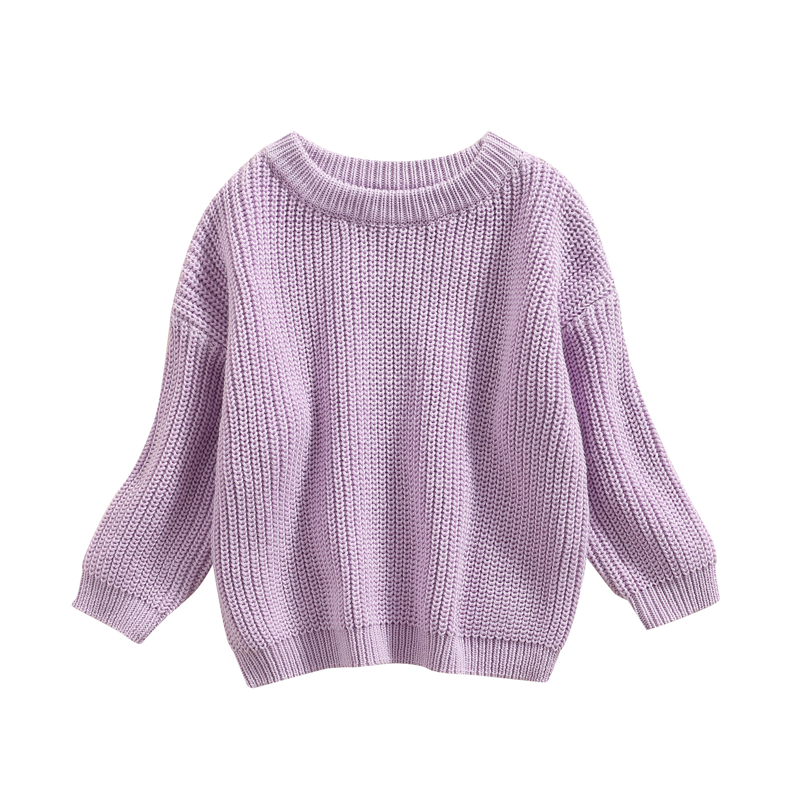 Toddler Baby Round Neck Sweaters, Winter Warm Long Sleeve Candy Color Knit Pullovers
