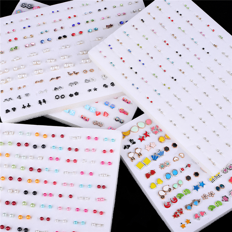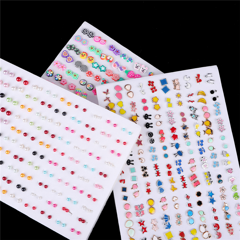 100Pairs Acrylic Crystal Heart Star Moon Small Stud Earrings Set For Women Girl Animal Flower Plastic Earring Trend Jewelry