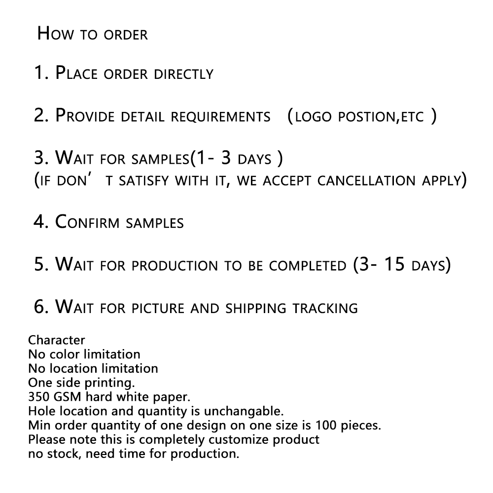 No color limitation, no location limitation, one side printing. 350-400 GSM hard white paper.