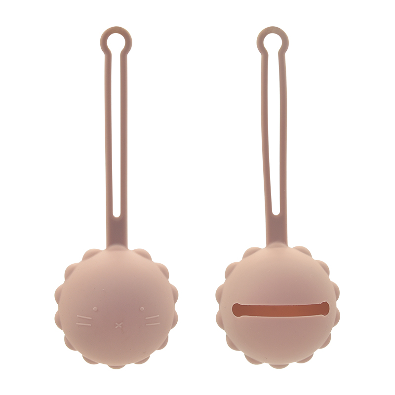 2 Made from a soft silicone with a convenient strap, this pacifier case is easy to attach to a stroller or diaper bag.
