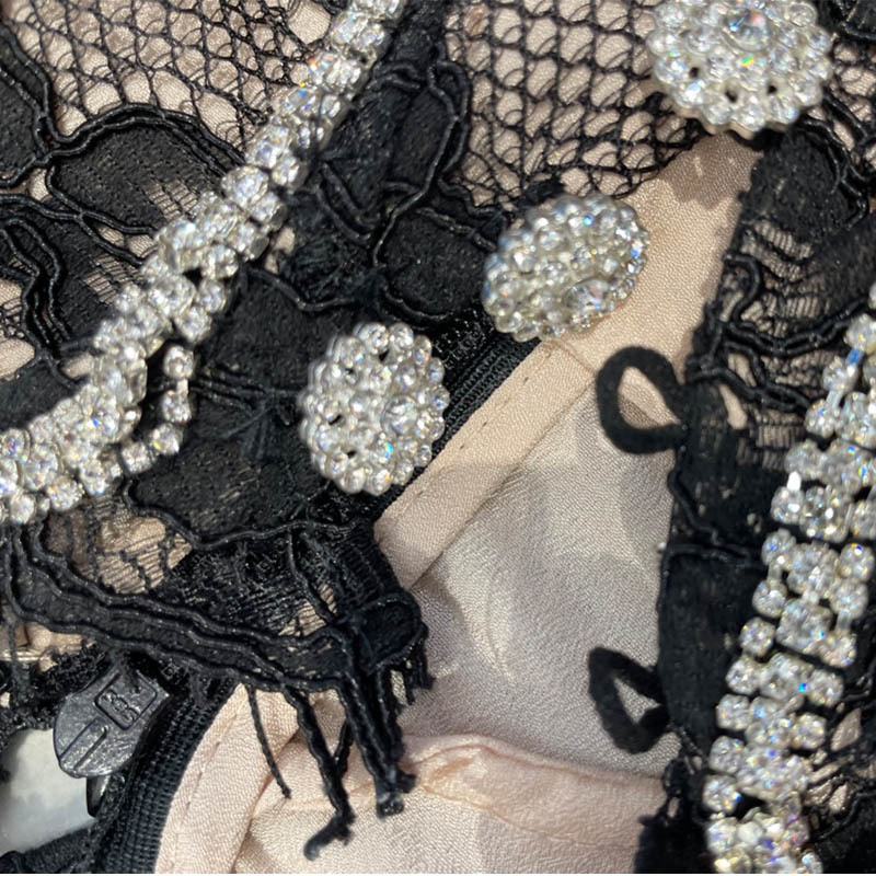 22 Spring Summer Runway Elegant Dresses For Women See Through Lace Rhinestone V Neck High Waist Slim Midi Dress 2 Colors