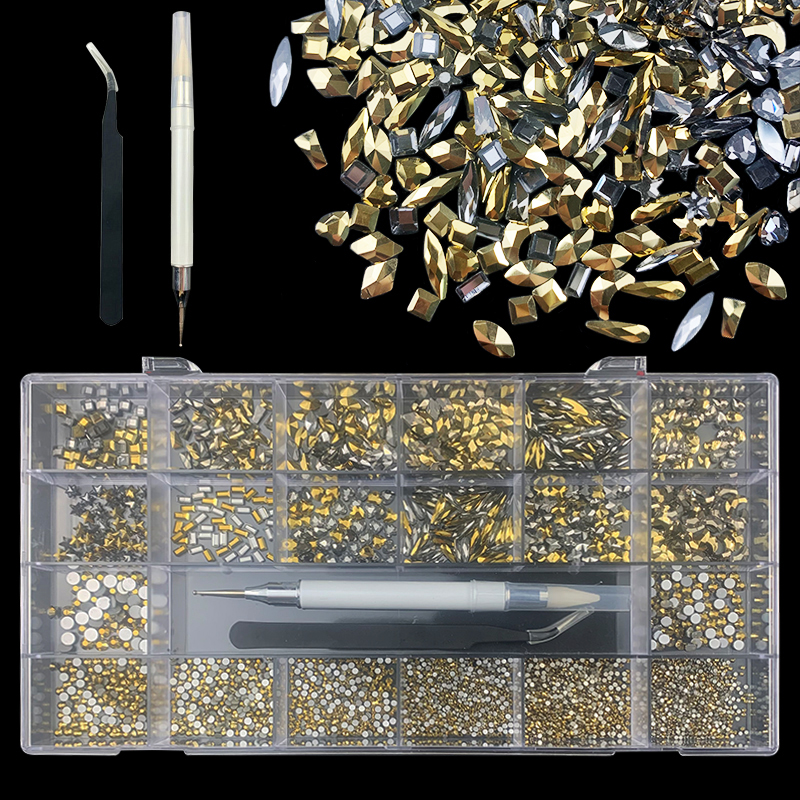 2500pcs Crystal Nail Art Rhinestones Kit Multi Size Glass Gem Stones Set 3D Charm Jewels Decorations With Box Pick Up Pen