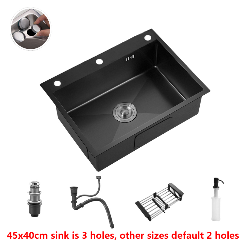 304 Stainless Steel Kitchen Sink Topmount Single Bowl DarkGray Wash Basin For Home Fixture With Kitchen Faucet Drain Accessories