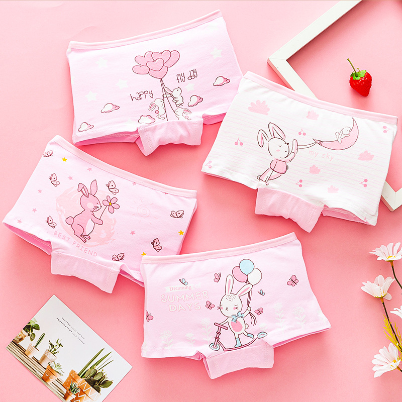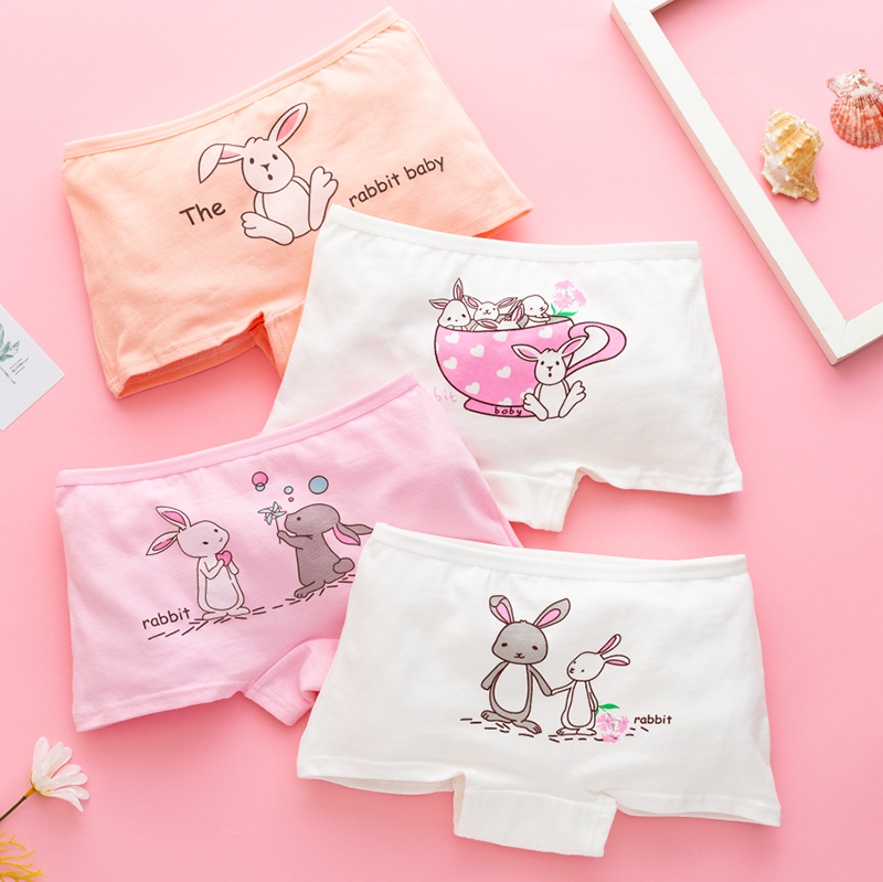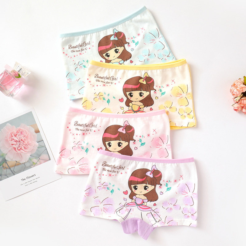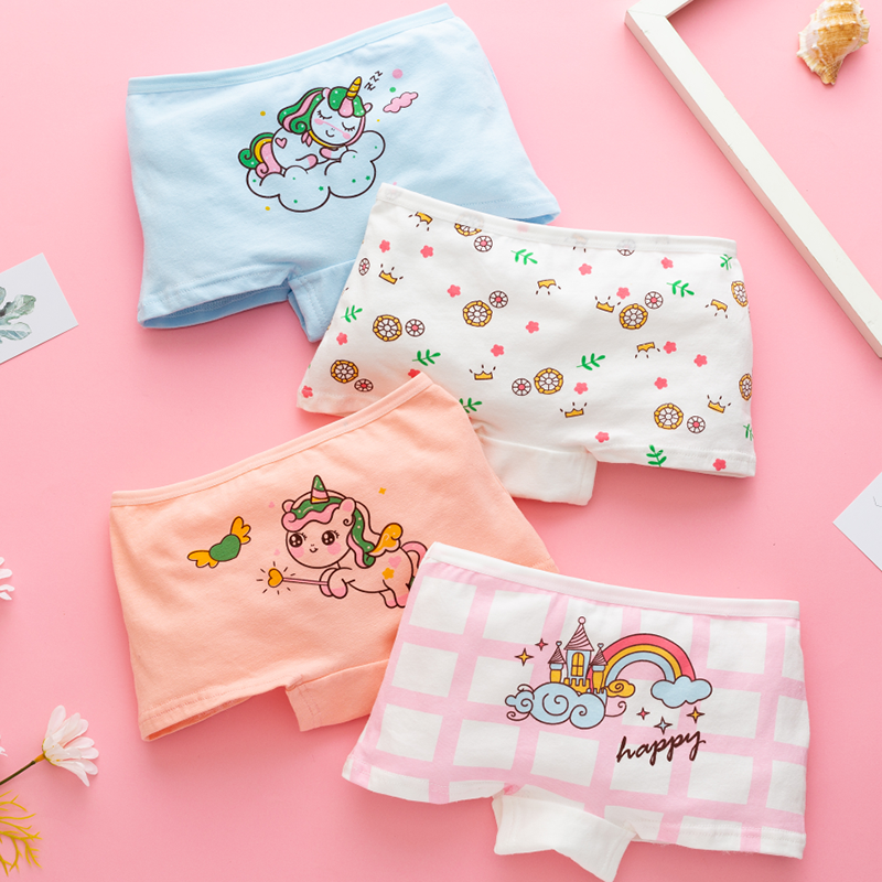 4 Pieces/Lot 2-12Y Children Underwear High Cotton Girls Panties Cute Cat Pattern Kids Boxer Briefs Child Soft girl Pants