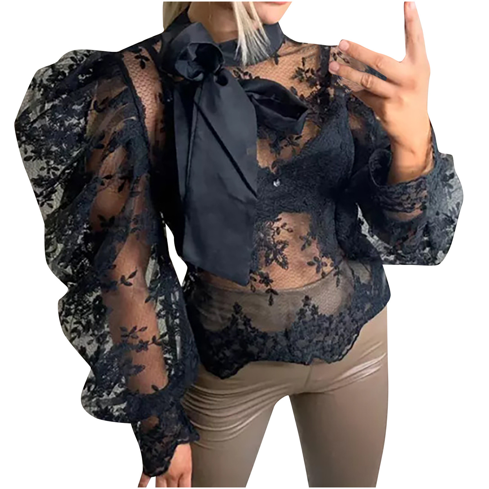 40# Women Blouse Hollow Out Long Sleeve Turtleneck Mesh Lace Bow Sexy Blouse Drawstring Ruched Sweater Tops Блузка С Кружевом