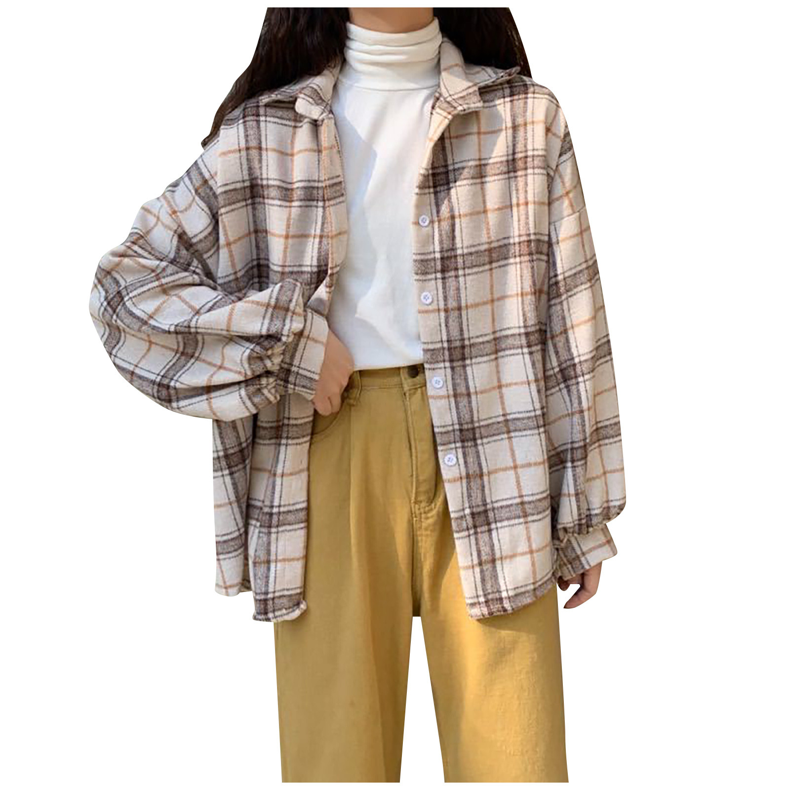 Women's Casual Plaid Long Sleeve Shirt Fashion Button Loosen  Cardigan Tops