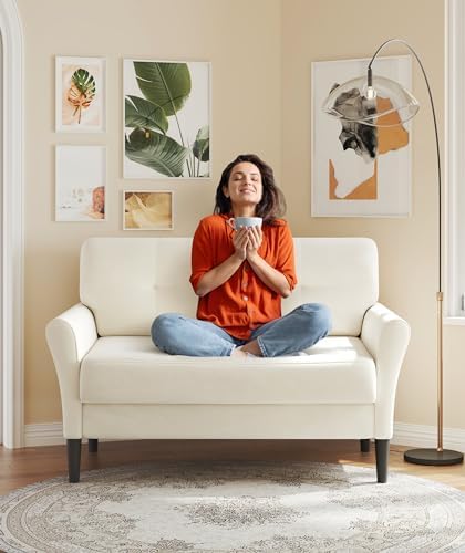 I recently moved into a studio apartment and wanted a small couch in the living room. This loveseat couch is compact and comfortable. The material is velvet so it is soft and looks high end. It took a few days for the cushions to fully expand and look less wrinkly. Overall it was very easy to put together and looks great for the price.