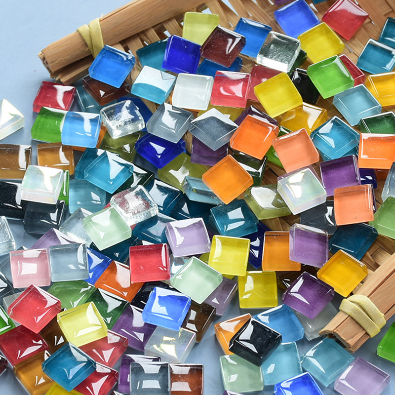 50PCS Square Crystal Glass Colorful Mosaic Stones DIY Handmade Children's Creative Decoration Accessories Stickers