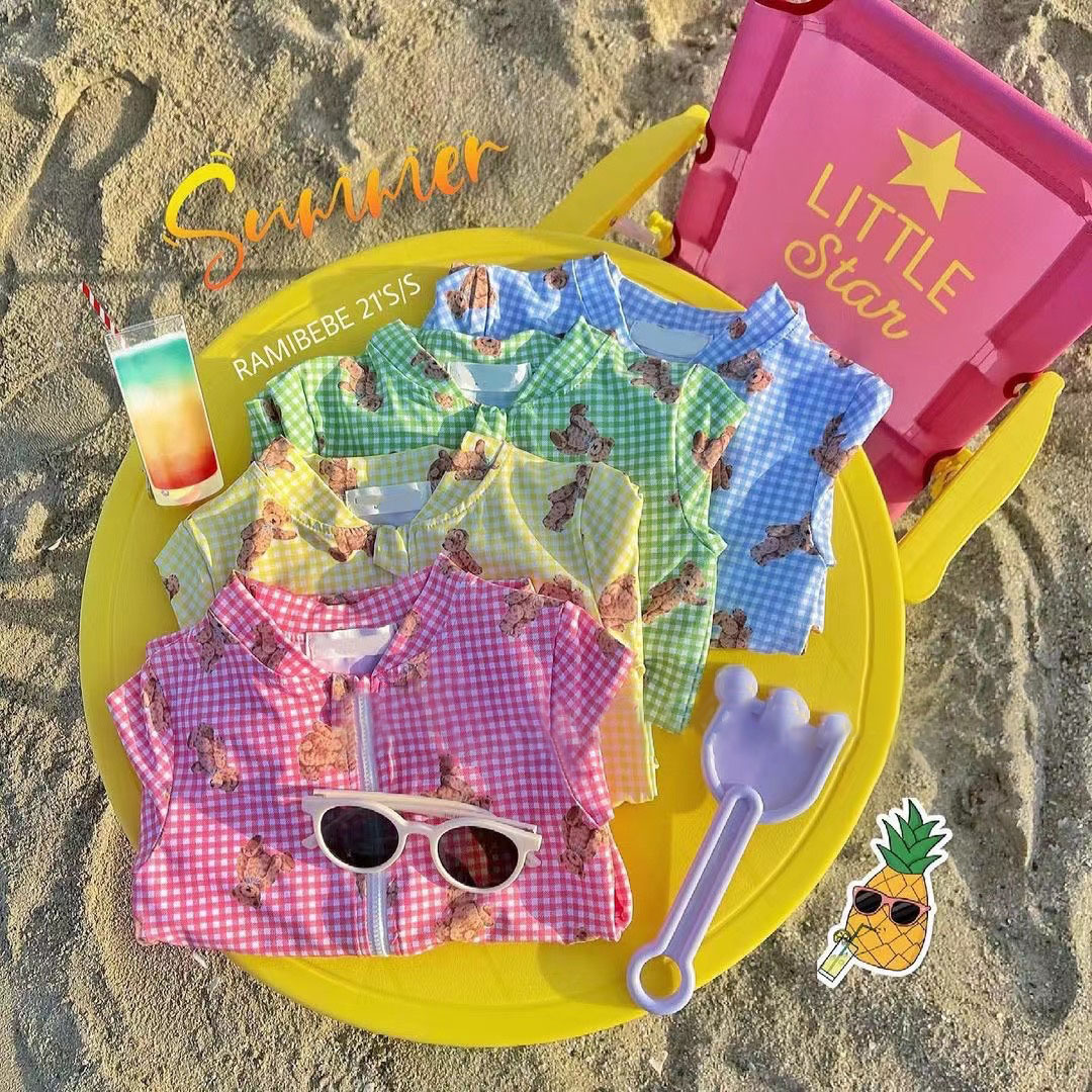 7973 Baby Girl Swimwear Children Swimsuit With Hat Summer Long Sleeve Bodysuit Baby Swimsuit Boy 1-7T Kids Swimsuit