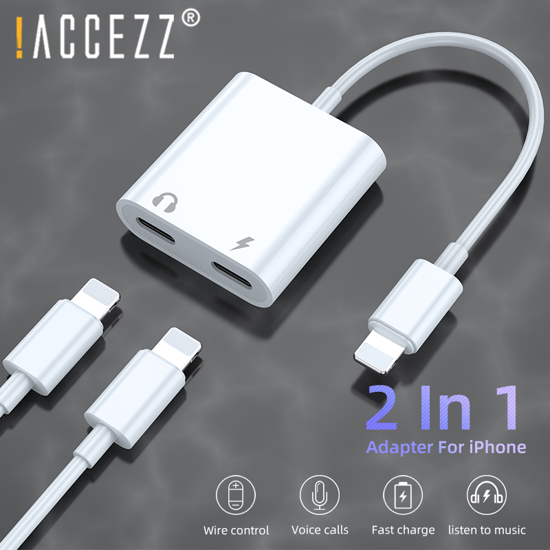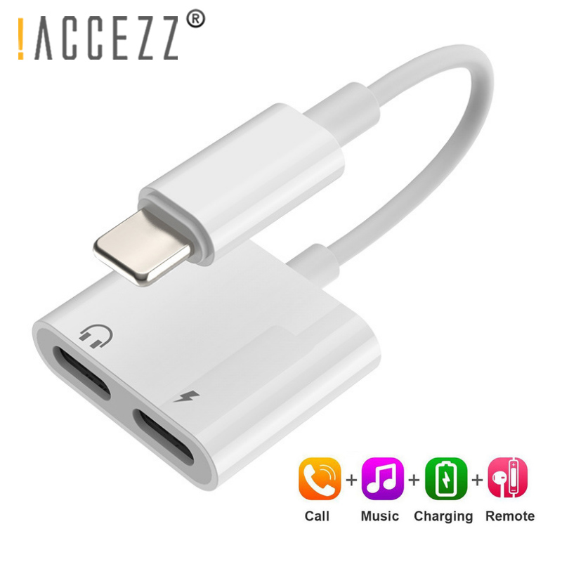 !ACCEZZ Dual Lighting Audio Adapter For IPhone XS MAX XR X 8 Plus 3.5mm Jack Earphone Charging Aux 2 In 1 Splitter For IOS 11 12