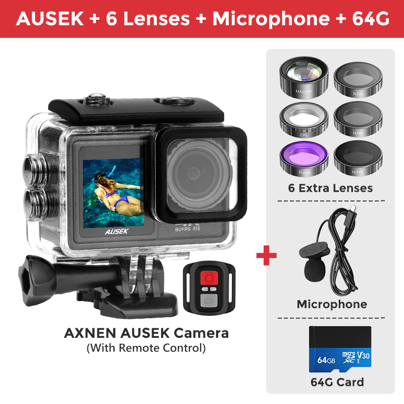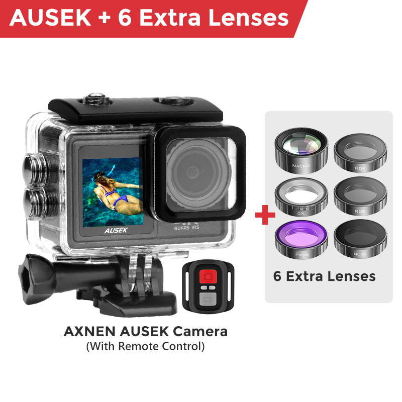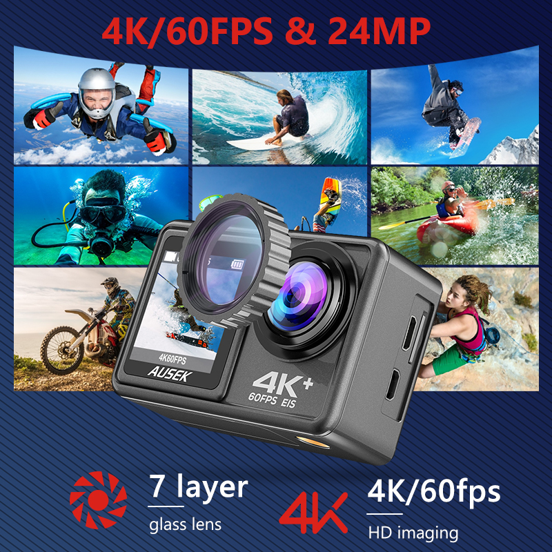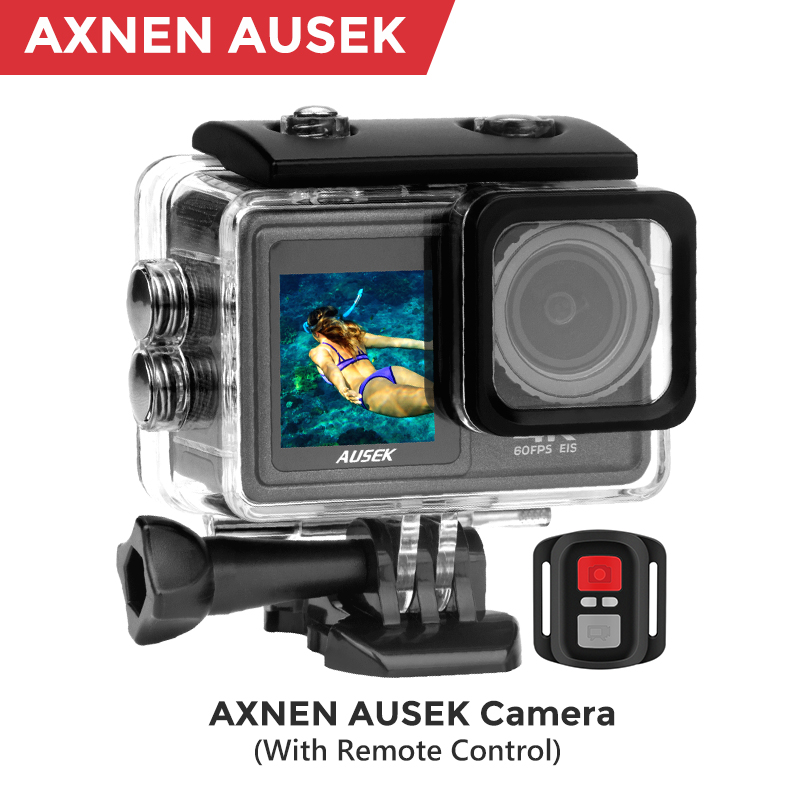 AXNEN AUSEK Action Camera 4K 60FPS EIS Video with Optional Filter Lens 24MP Po 1080P Webcam Vlog WiFi Sports Cam with Remote