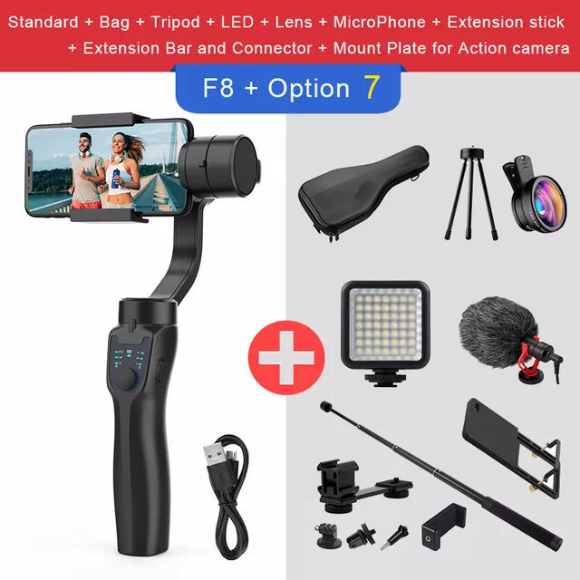 AXNEN F8 3-Axis Handheld Gimbal Phone Stabilizer Smartphone Tripod Cellphone holder for iPhone Android Mobile video Record