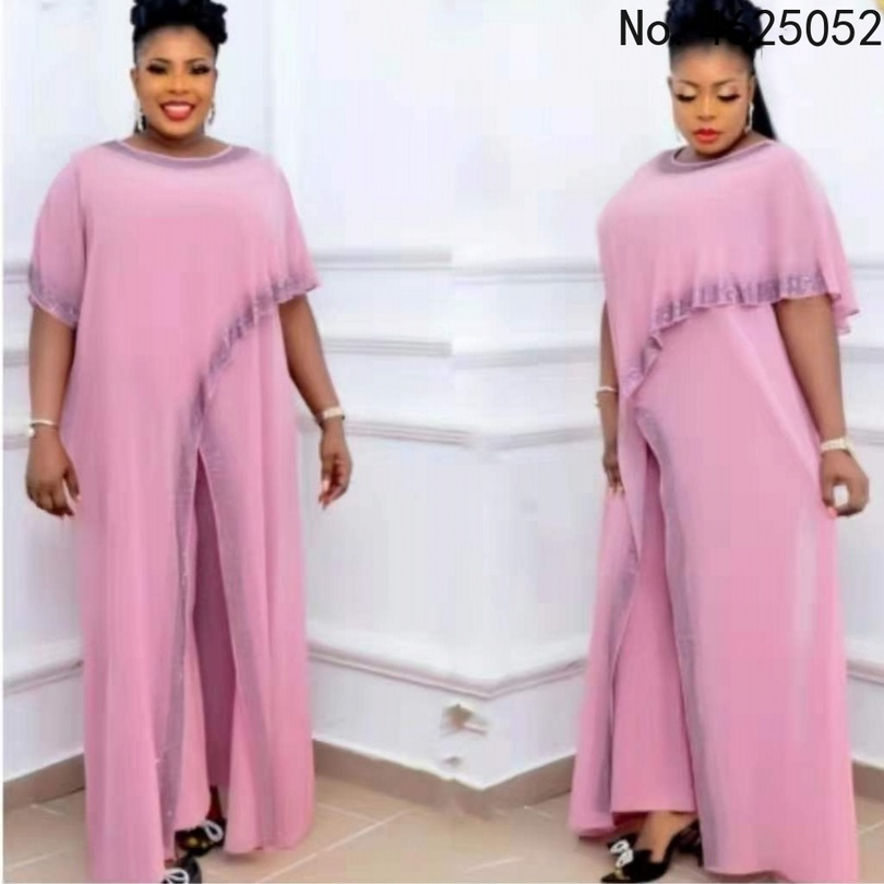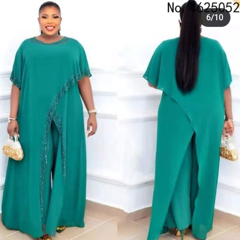African Dress Clothes Women 2 Piece Set Long Tops Robes And Pant Suit Summer Diamond Streetwear Chiffon Africa Clothing Set