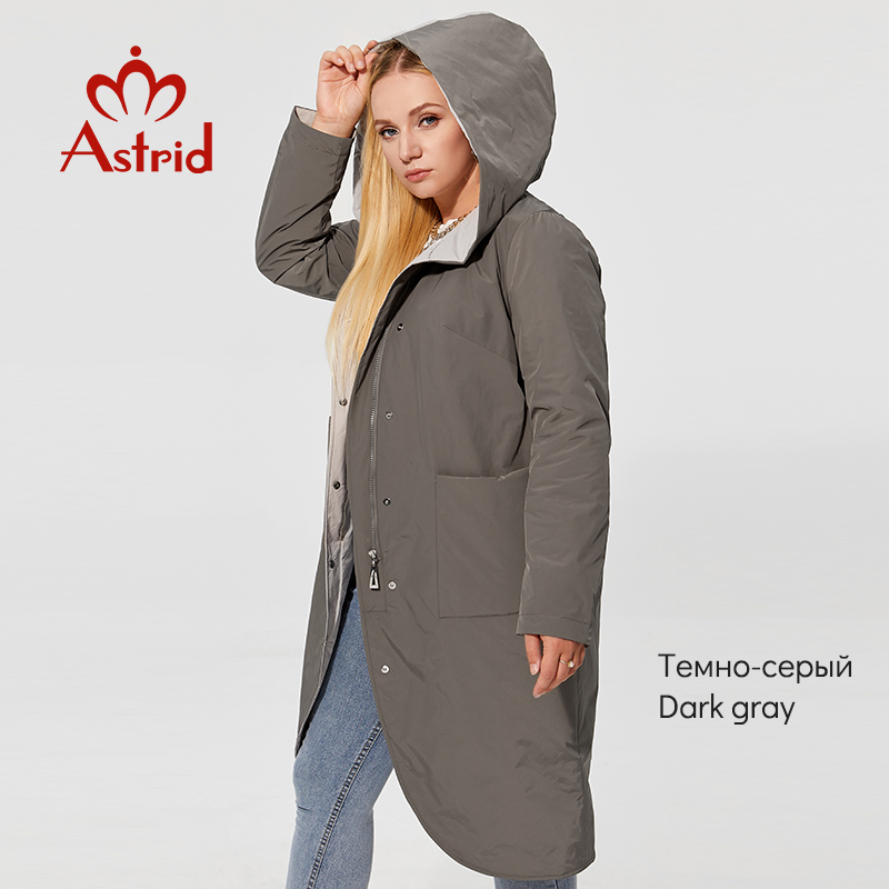 Astrid Spring Women's Parkas Plus Size Thin Cotton Elegant Long Jackets Female Coats with Hooded Big Pockets Belt Outerwear
