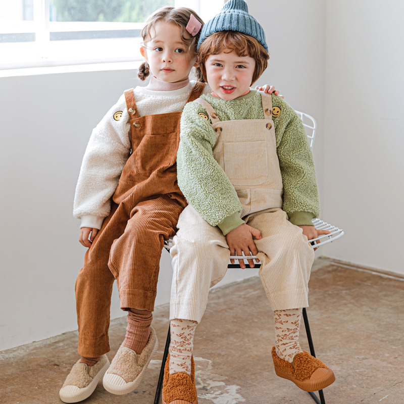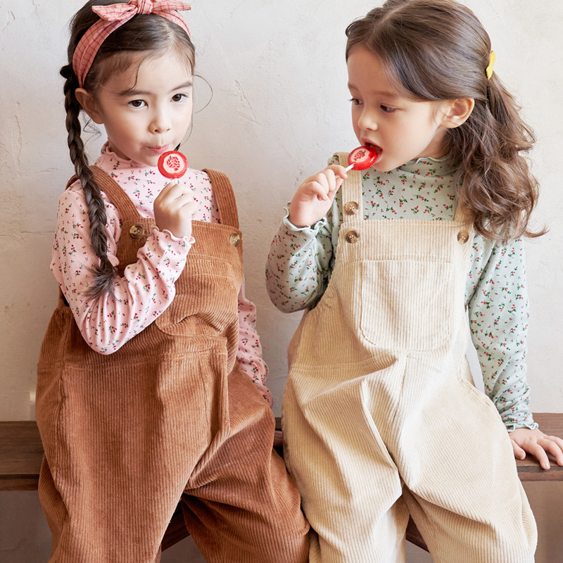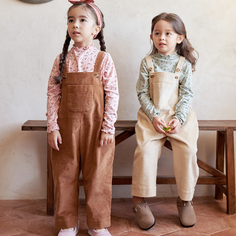 BEBEZOO Kids Overalls For Girls Corduroy Large Pocket Jumpsuit Casual Strap Trousers Autumn Casual Suspender Trousers