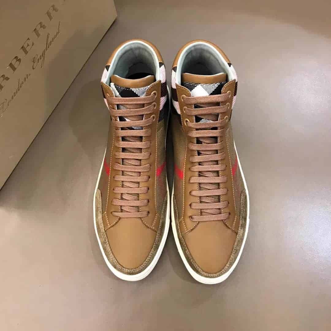 BURBERRY LEATHER AND HOUSE CHECK HI-TOP SNEAKERS – BBR28