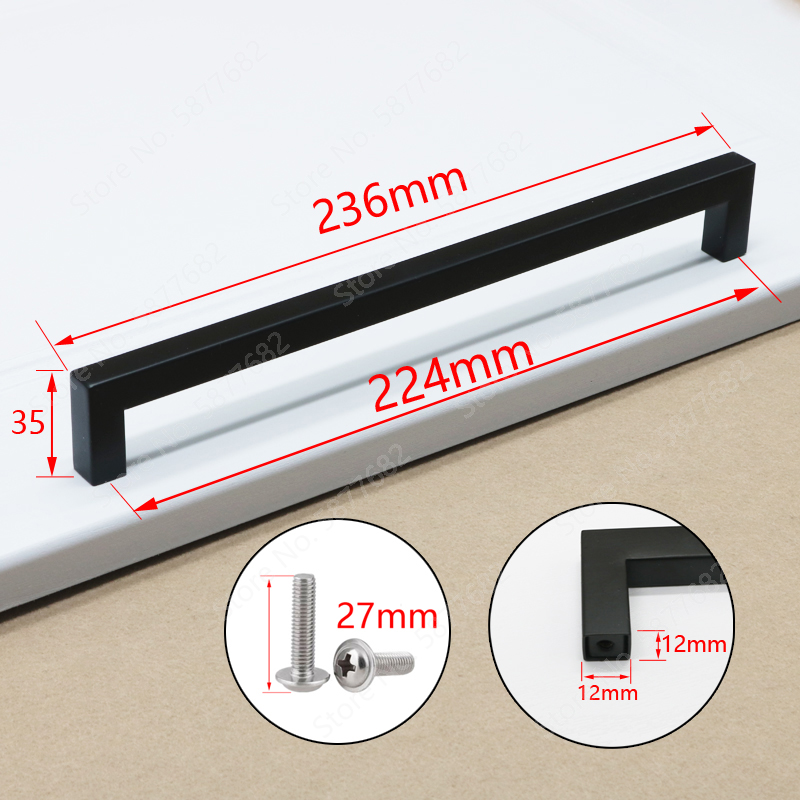 Black Cabinet Handle Square Furniture Hardware Stainless Steel Kitchen Door Knobs Cupboard Wardrobe Drawer Pulls