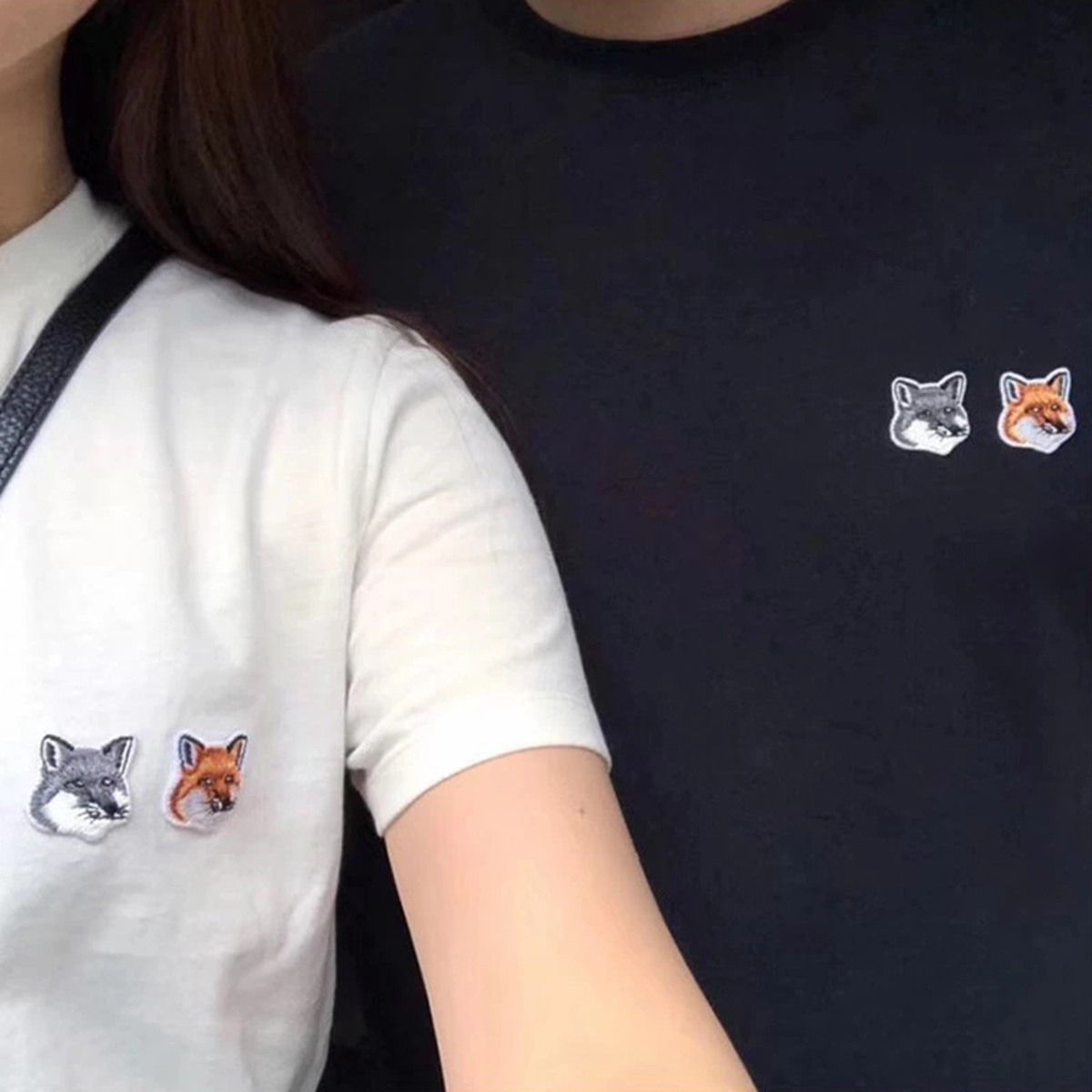 Classic Couple Crop Top T-shirt Double Fox Head Graphic Womens Pure Cotton Summer Fashion Casual All-match Short Sleeve PlusSize