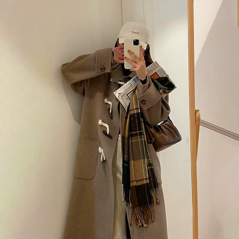 College style Japanese lovely woolen coat medium length ox horn buckle student JK coat camel winter coat autumn winter new