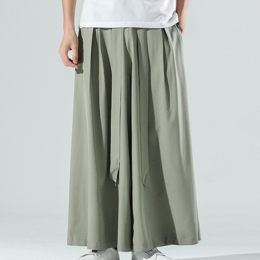 Cozy Black Ice Silk Hakama Kung Fu Pants With A Wide Bottom Wushu Kimono Chinese Mens Cotton Wide Pants For Mens East Style Grey