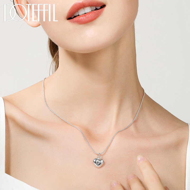 DOTEFFIL 925 Sterling Silver Solid Small Heart Pendant Necklace 16-30 Inch Snake Chain For Women Wedding Charm Fashion JewelryNecklace weight:7.20g
