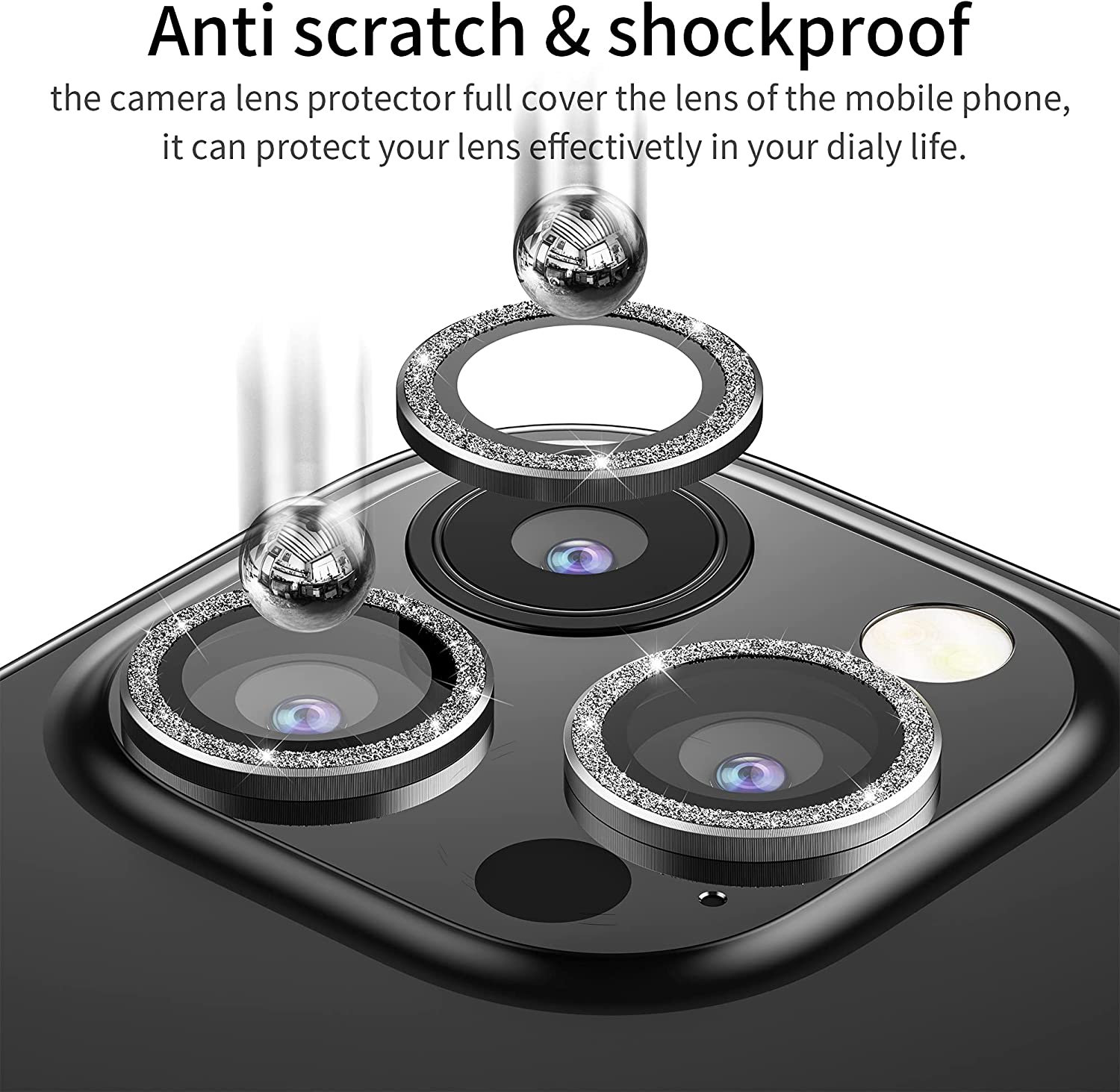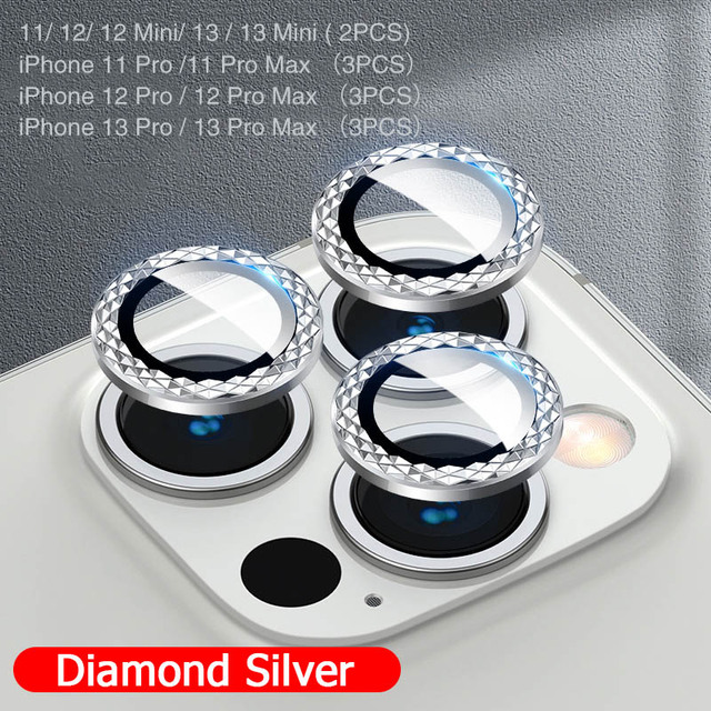 Diamond Glitter Camera Lens Protector On For iPhone 13 12 11Pro Max Mini Fully Protect Camera Metal Ring Lens Glass Protect Cap