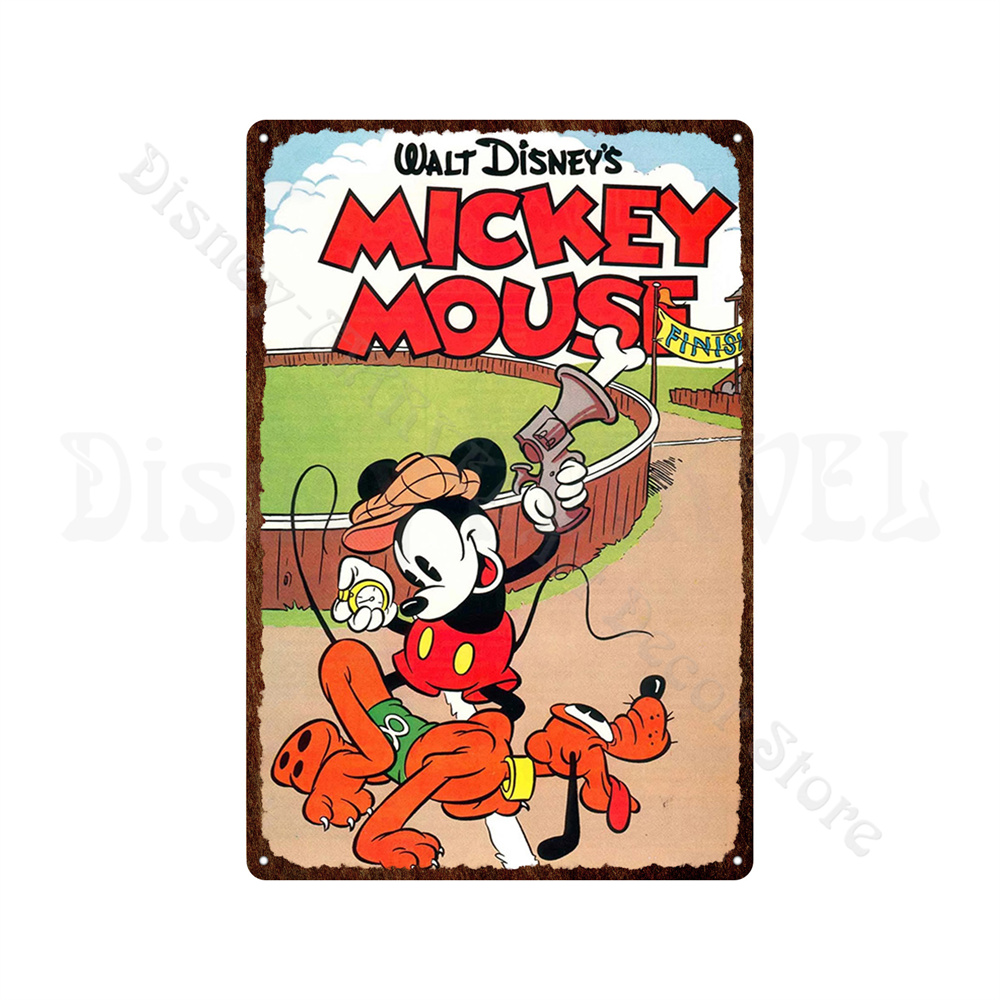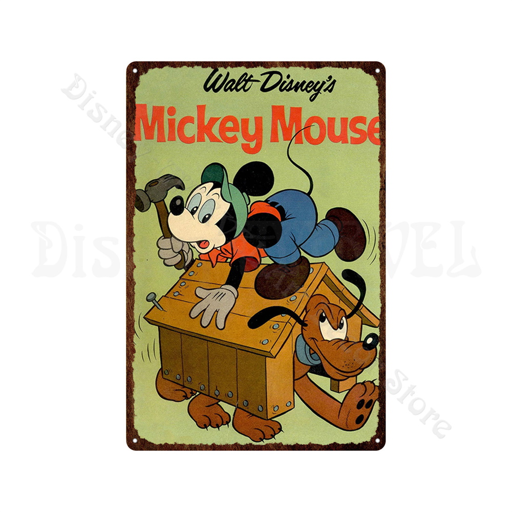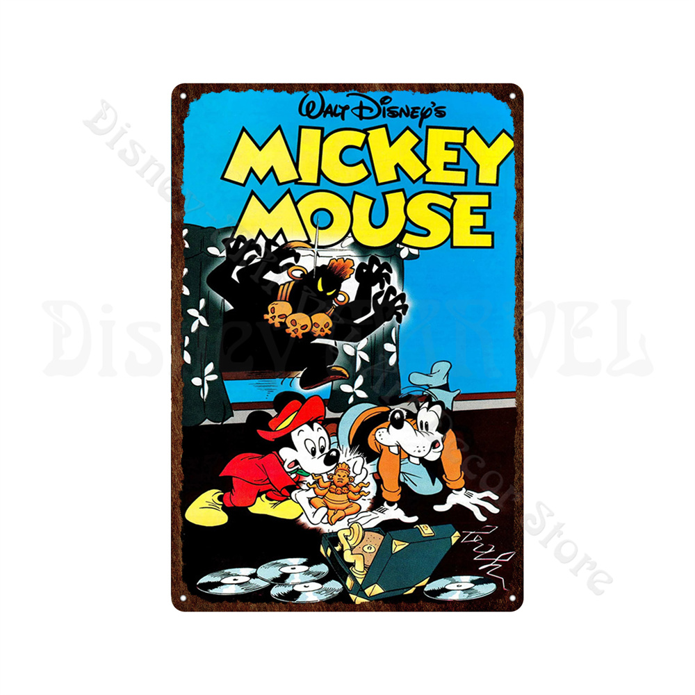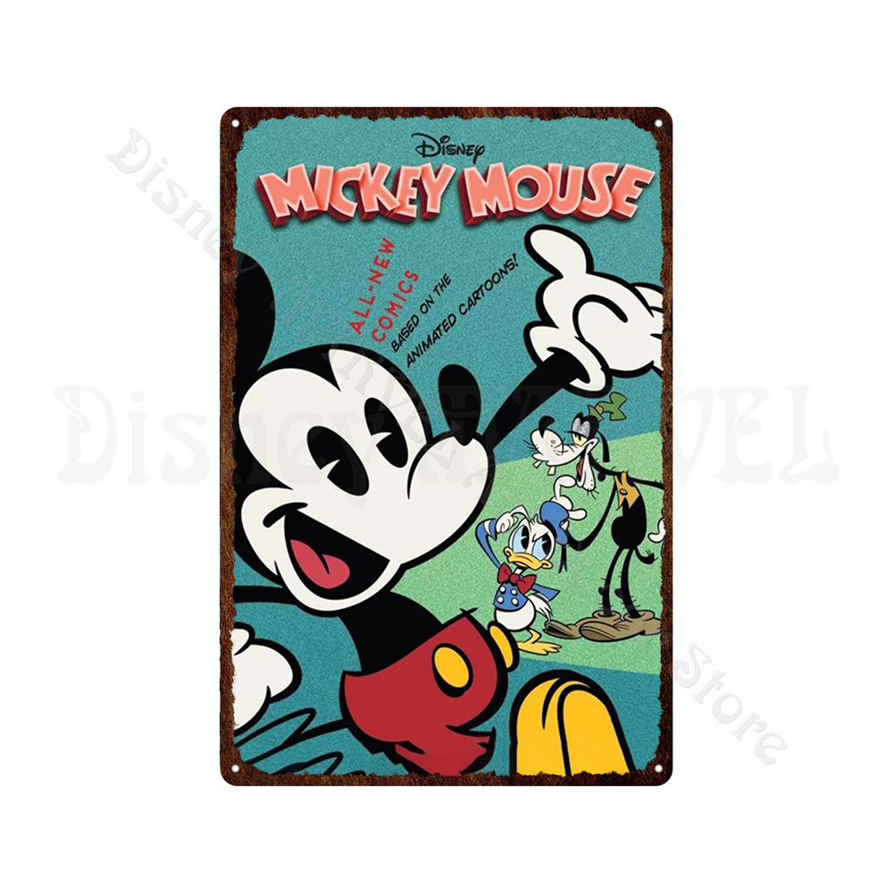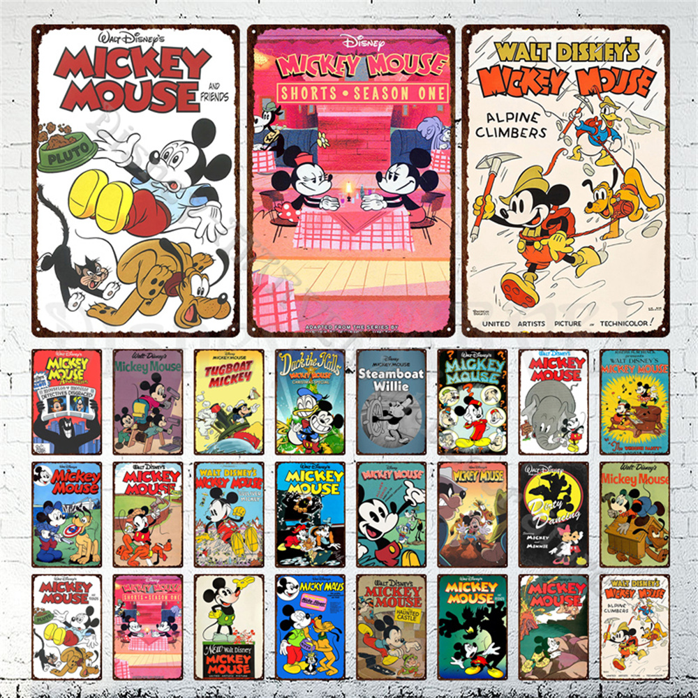 Disney Anime Metal Plaque Vintage Wall Decor Mickey Mouse Clubhouse Metal Wall Sticker Kids Room Playground Home Decor Tin Plate