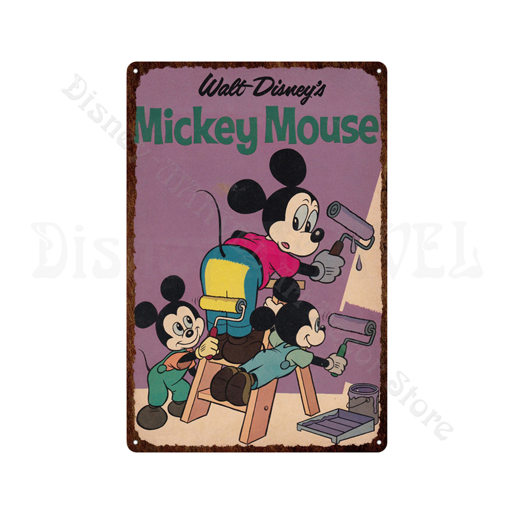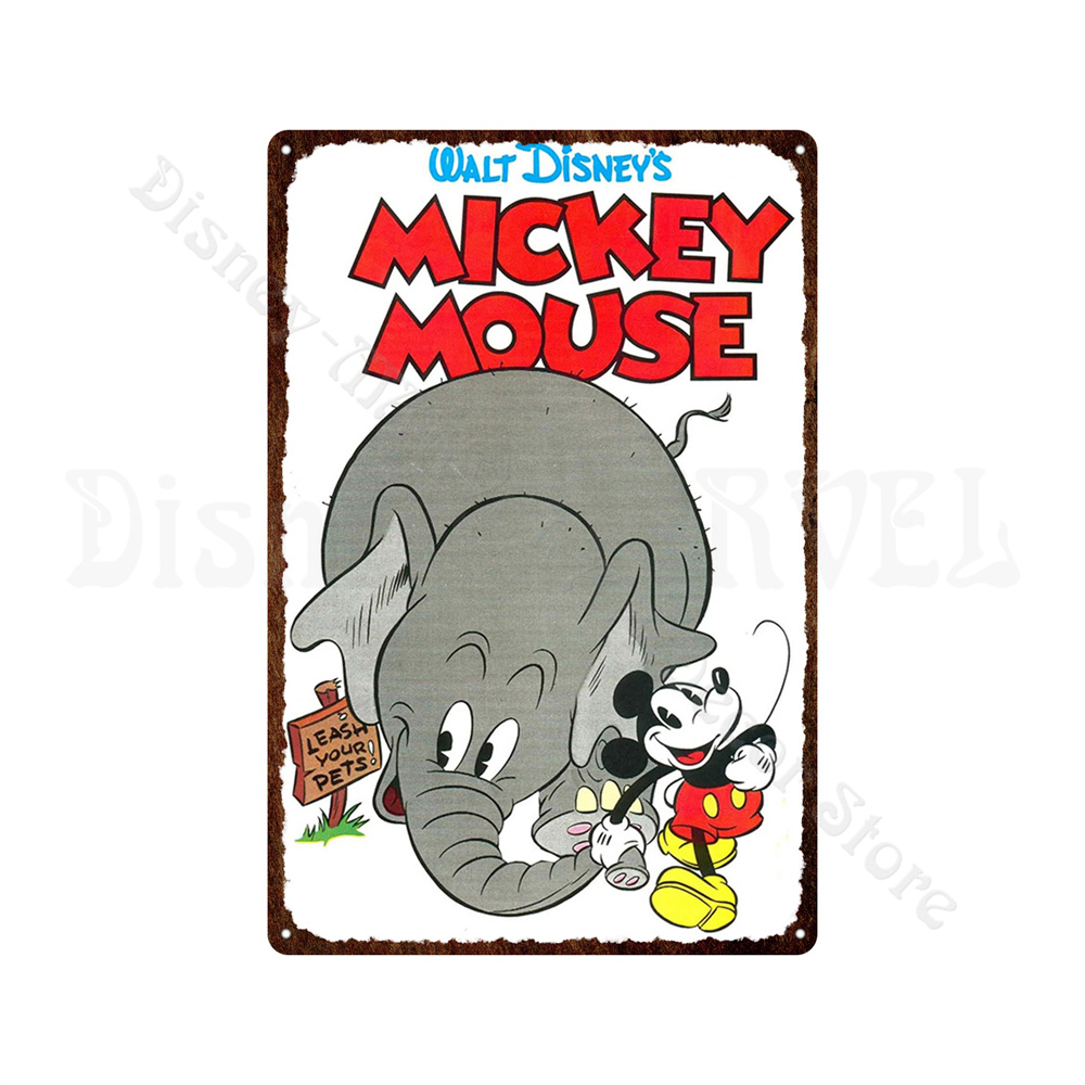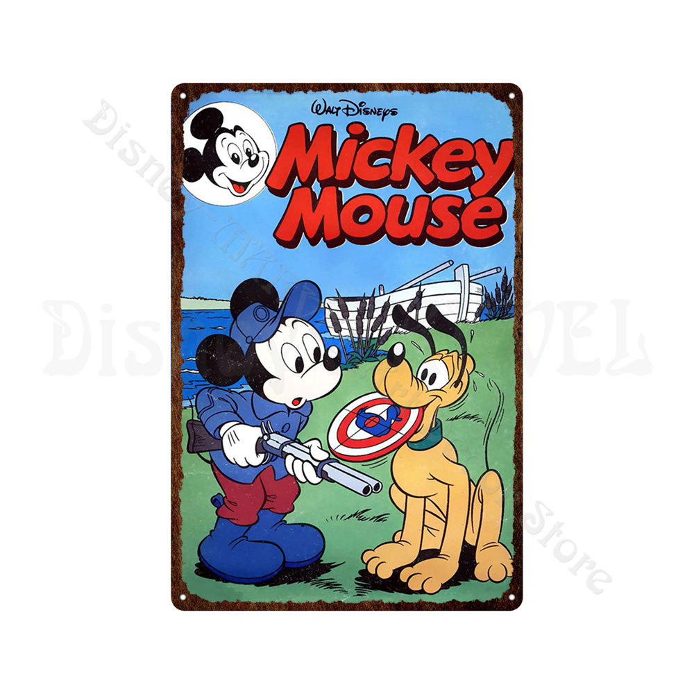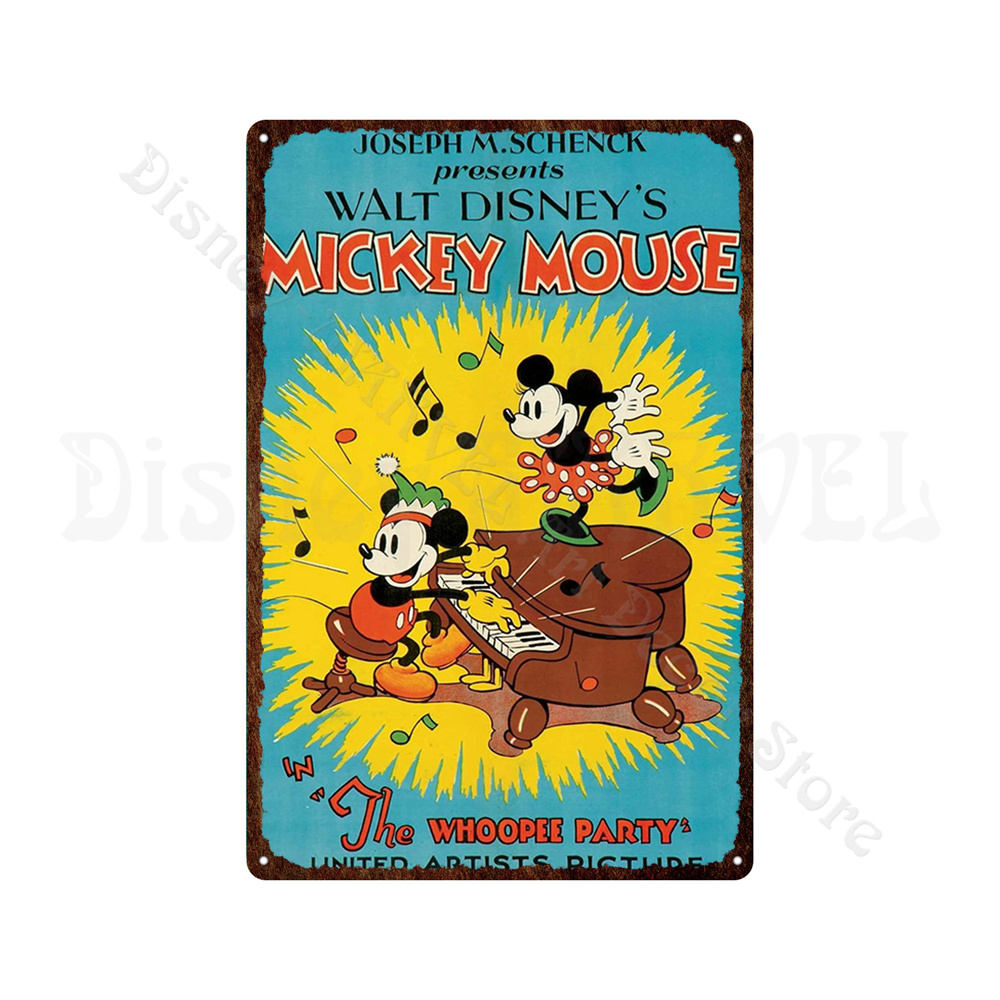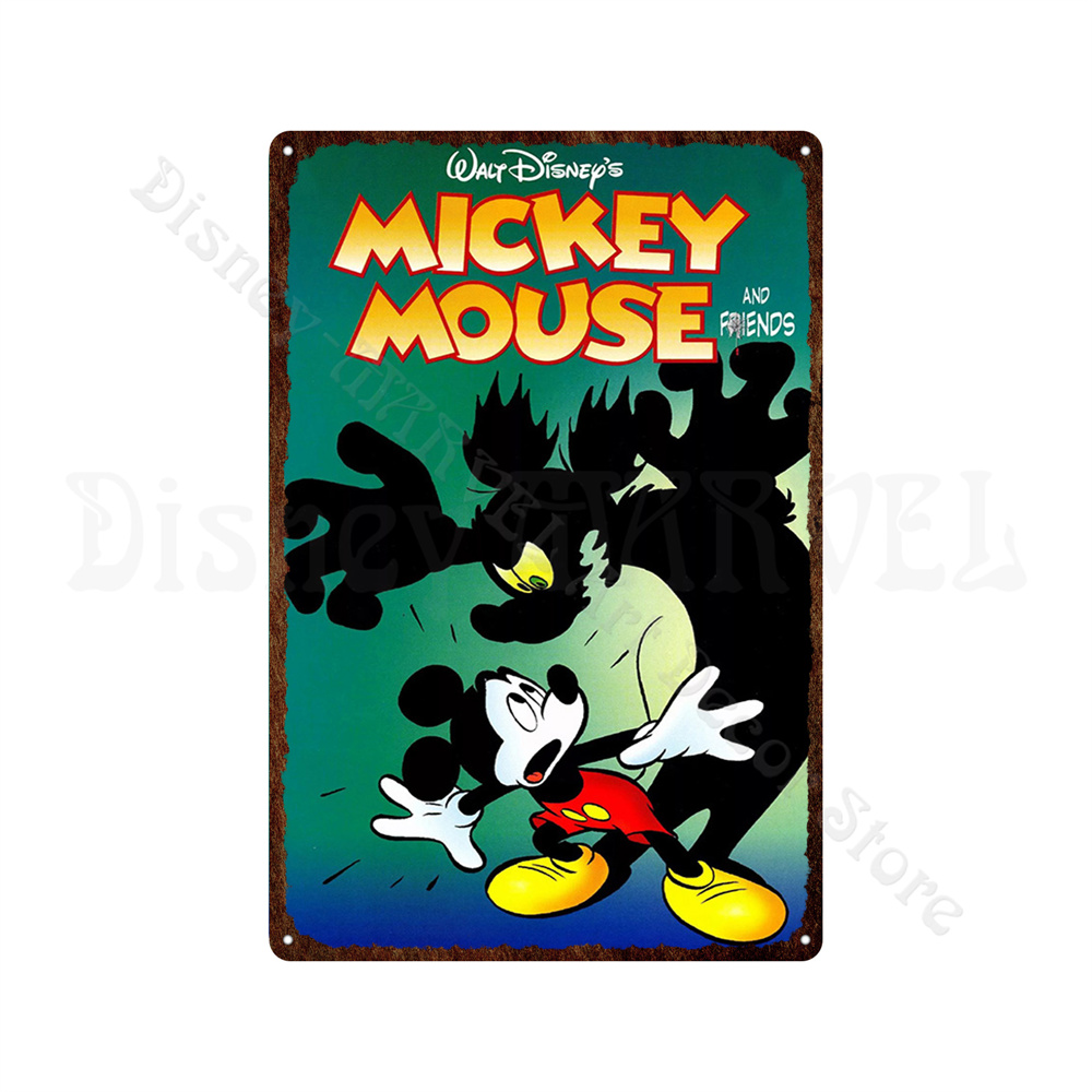 Disney Anime Metal Plaque Vintage Wall Decor Mickey Mouse Clubhouse Metal Wall Sticker Kids Room Playground Home Decor Tin Plate