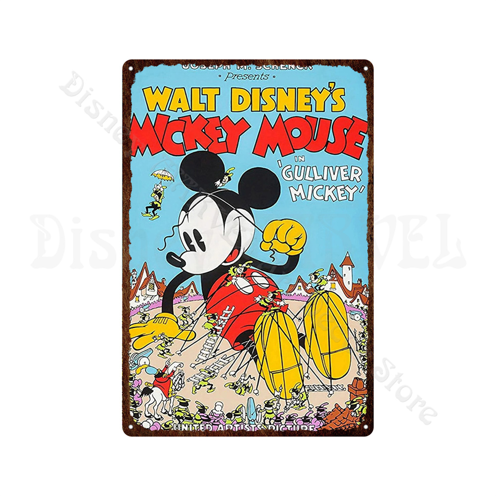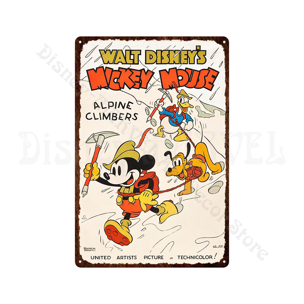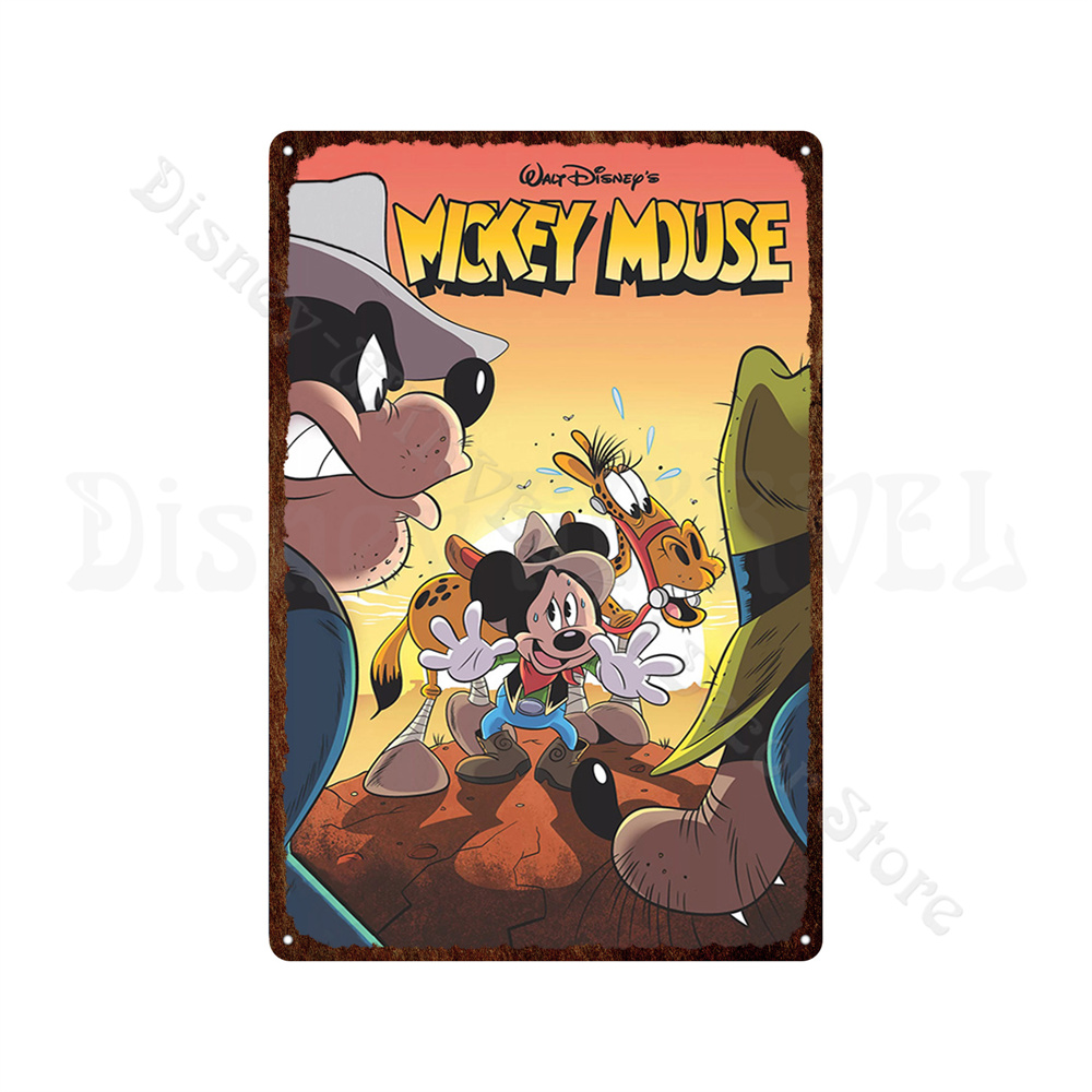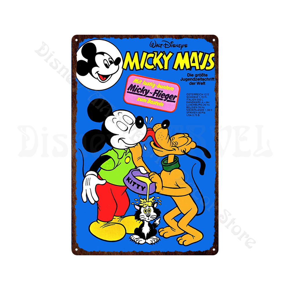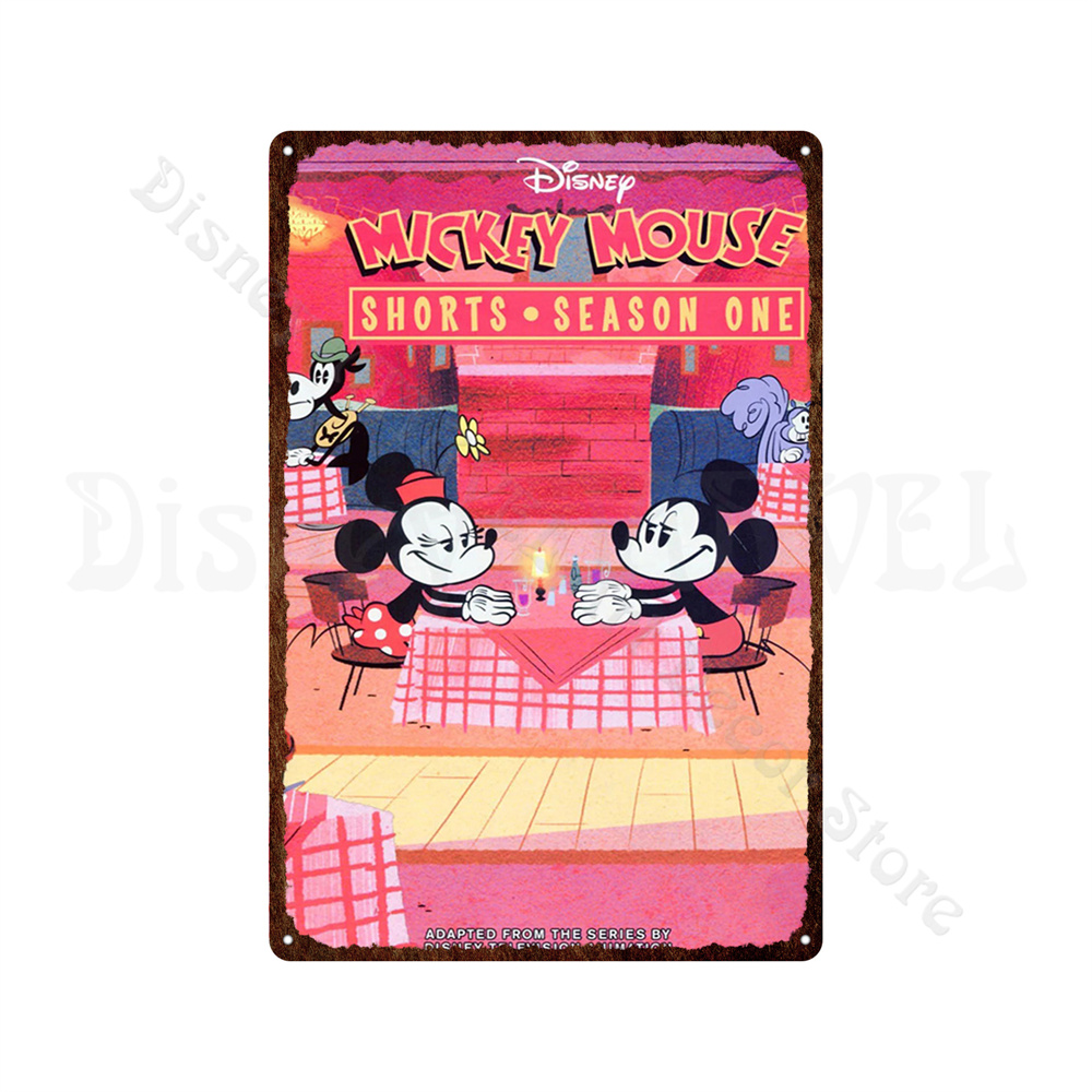 Disney Anime Metal Plaque Vintage Wall Decor Mickey Mouse Clubhouse Metal Wall Sticker Kids Room Playground Home Decor Tin Plate