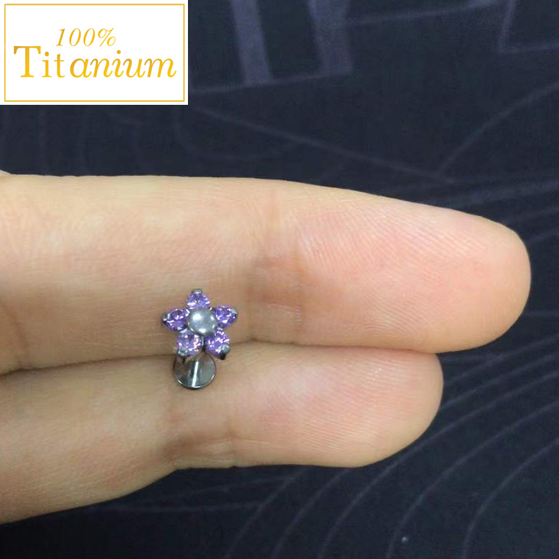 1PC F136 Titanium Labret Piercing Lip Studs Cartilage Tragus Helix Piercing Ear Nails Zircon Flower Earrings Body Perforated Jewelry