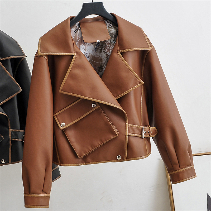 Faux Leather Jacket Women Casual PU Loose Motorcycle Jackets Female Streetwear Oversized Coat Chic Spring Autumn