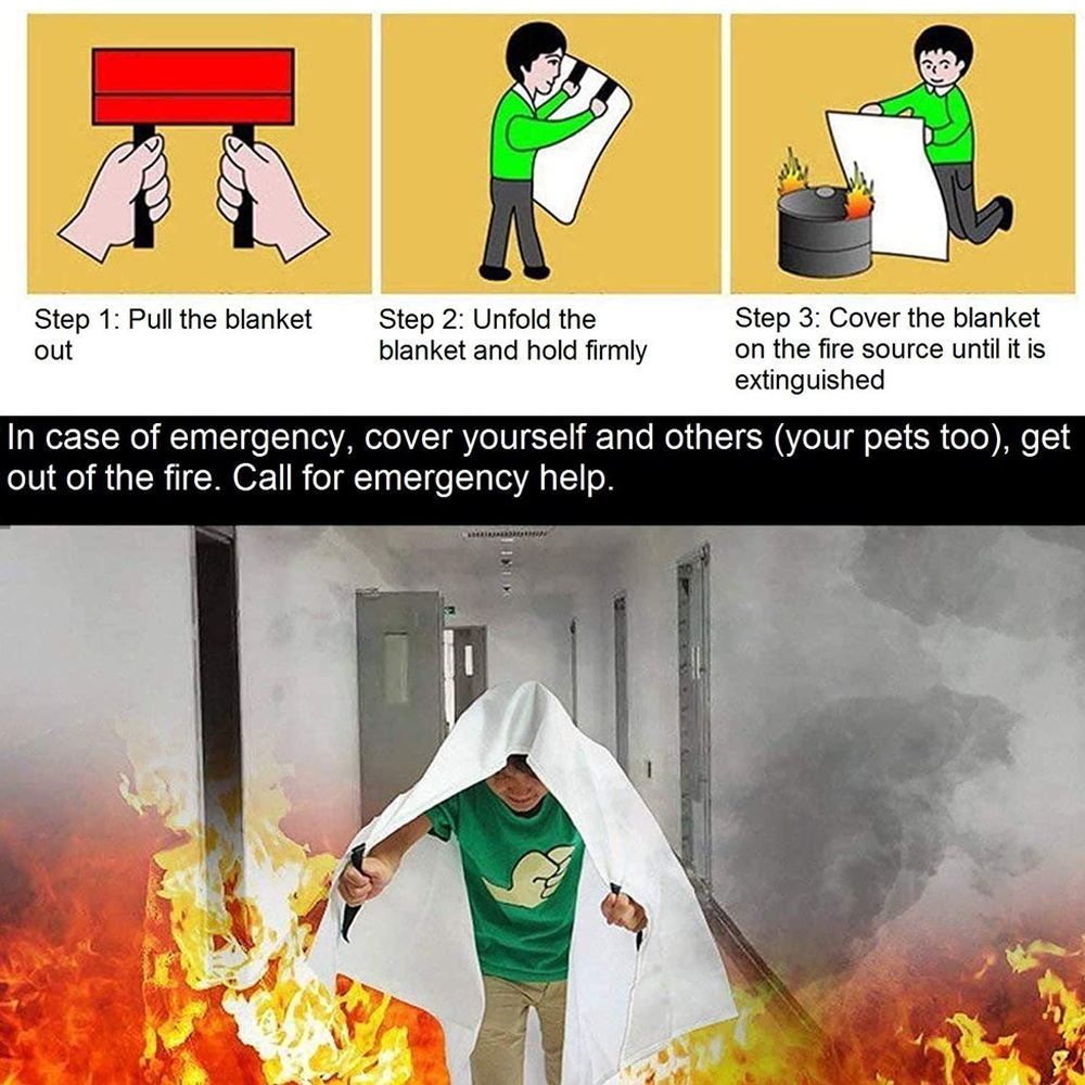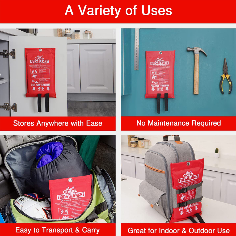 VARIOUS PLACES TO USE: Emergency survival fire blanket ideal for the kitchen, fireplace, grill, car, camping and so on