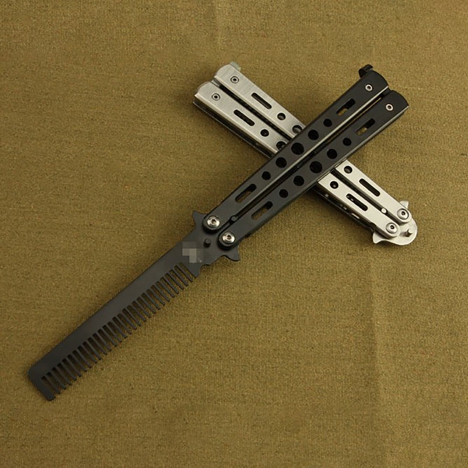 Foldable Comb Stainless Steel Practice Training Butterfly Knife Comb Beard Moustache Brushe Salon Hairdressing Styling Tool