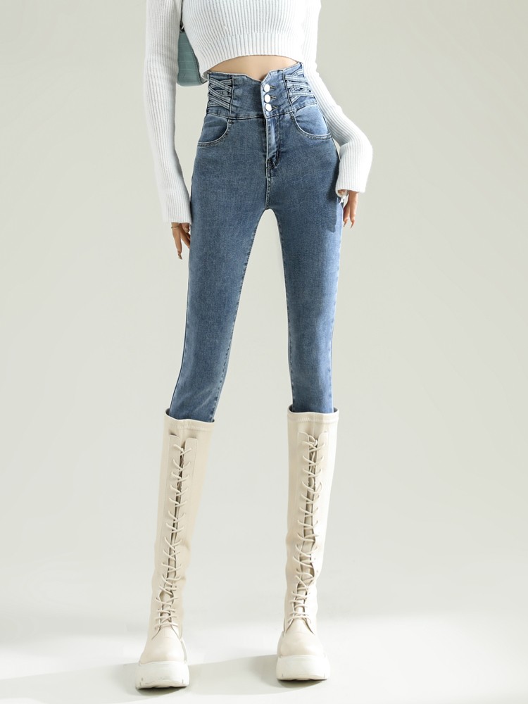 GUUZYUVIZ High Waist Elastic Skinny Jeans Women Autumn Winter Casual Slim Vintage Denim Pencil Pants