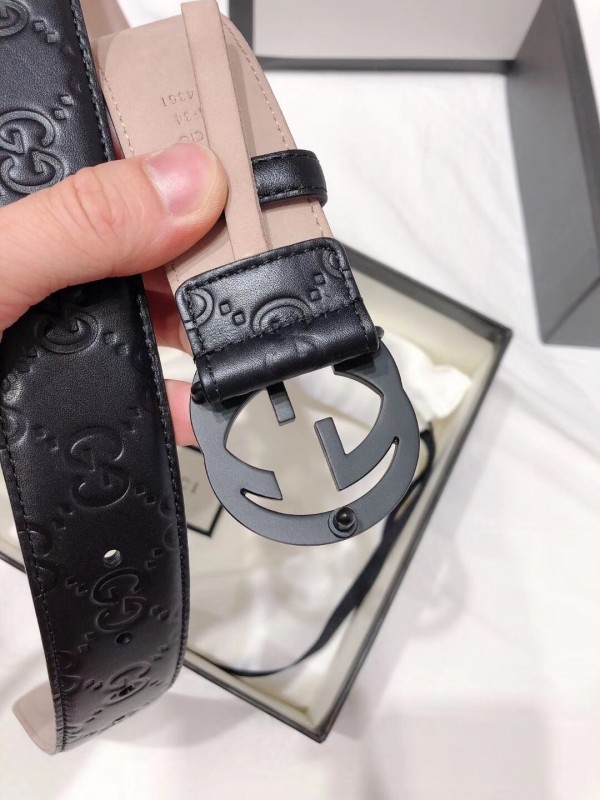 Offering an exciting update to a cult classic, Gucci introduces this belt. Featuring the new Interlocking G buckle to the fore and a debossed Gucci Signature leather strap, it packs a powerful sartorial punch whether you style it atop jeans or to cinch the waist of a billowing summer dress.