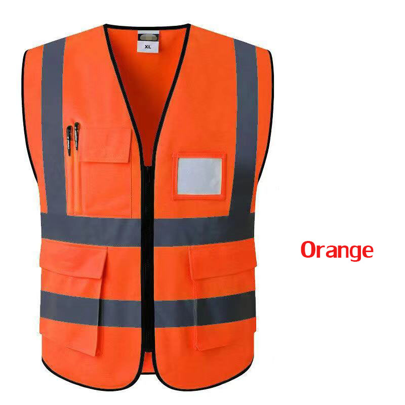 High Visibility Zipper Front Safety Vest With Reflective Strips Bicycle and Motorcycle Riding Safety Clothing Multi-Pockets