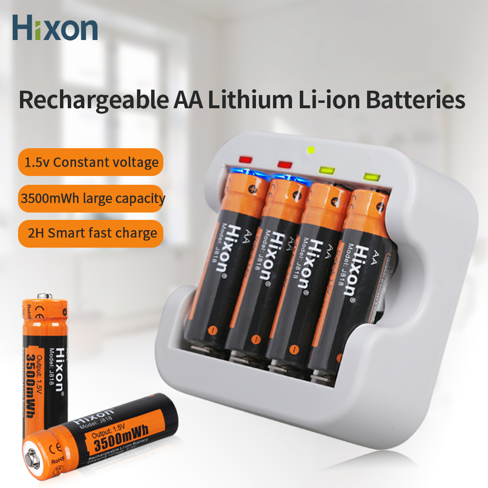 Hixon 1.5V High Capacity of 3500mWh AA Li-ion Rechargeable Batteries With Quick Charger,Support Wholesale, Flashlight, Fan