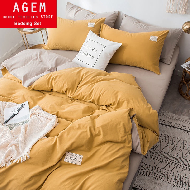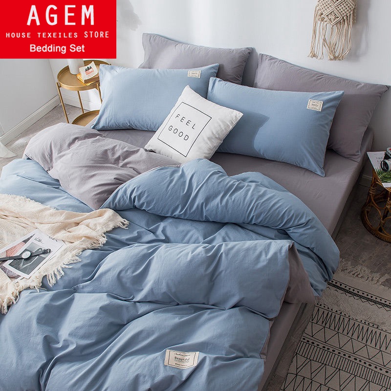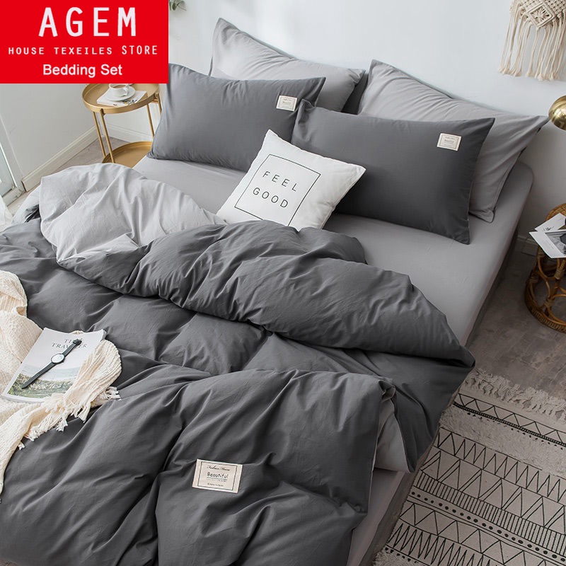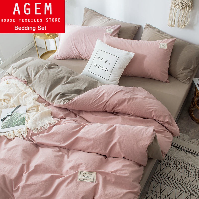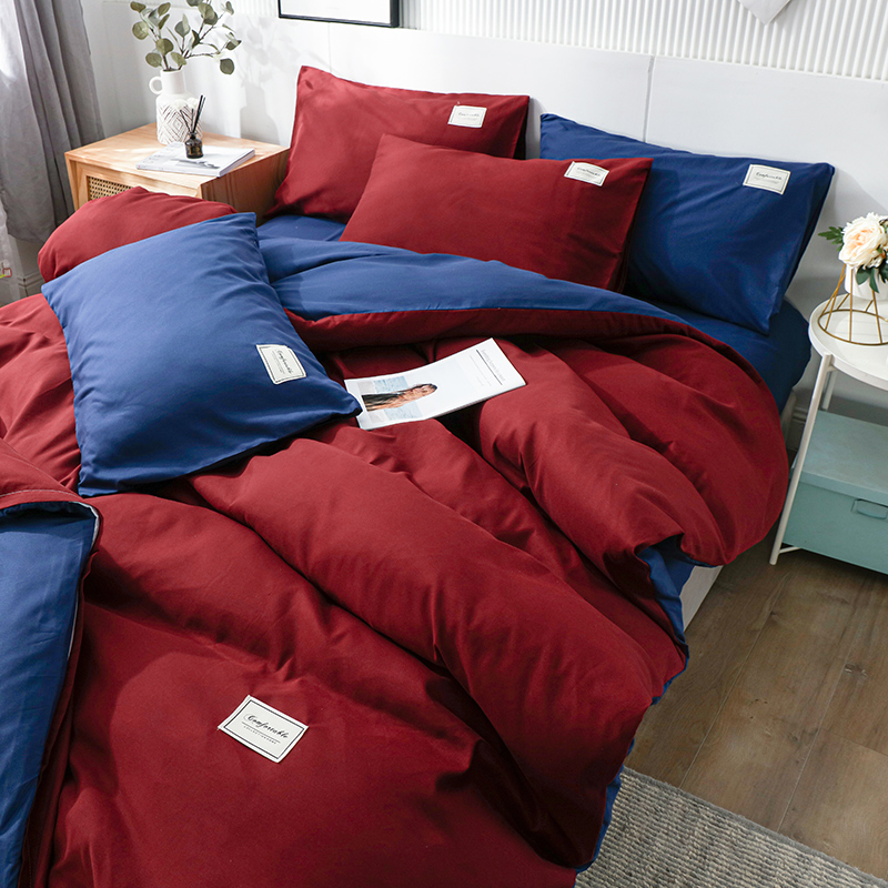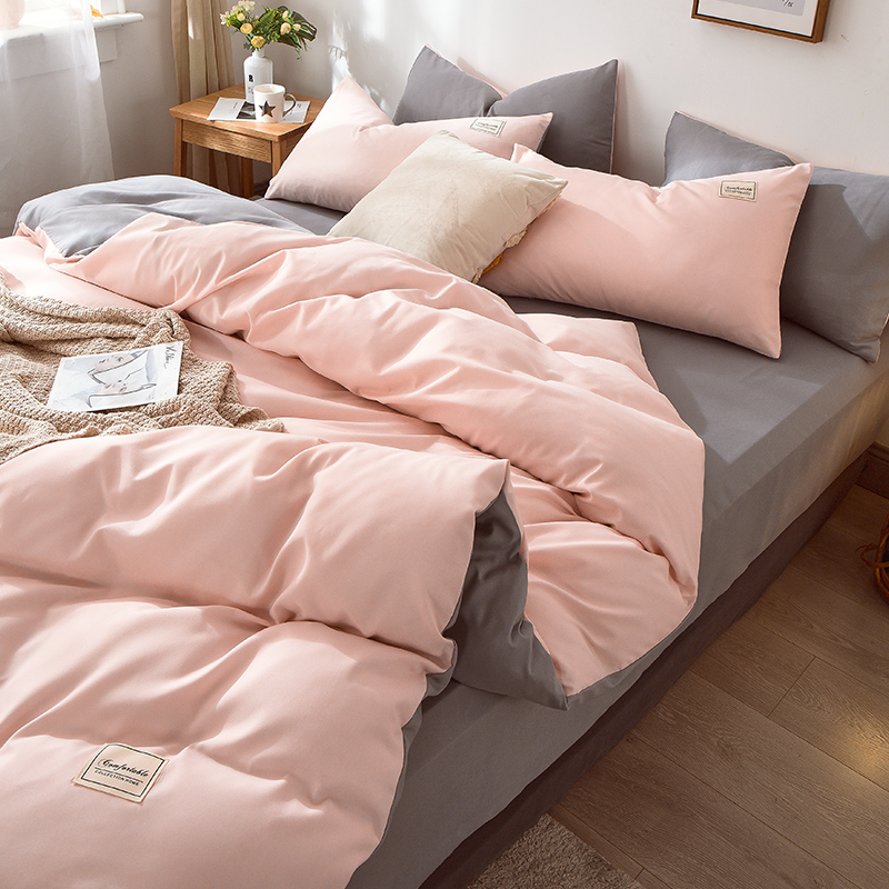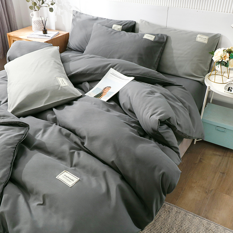 Home Textile Solid Color Duvet Cover Pillow Case Bed Sheet AB Side Quilt Cover Boy Kid Teen Girl Bedding Linens Set King Queen