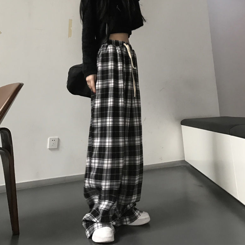 JMPRS Harajuku Black and White Plaid Pants Women Summer Casual Wide Leg Trousers Loose Straight Pants Y2k Bottom