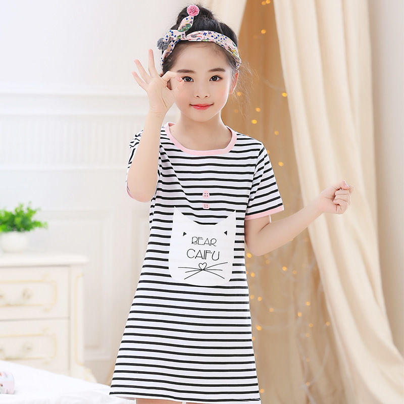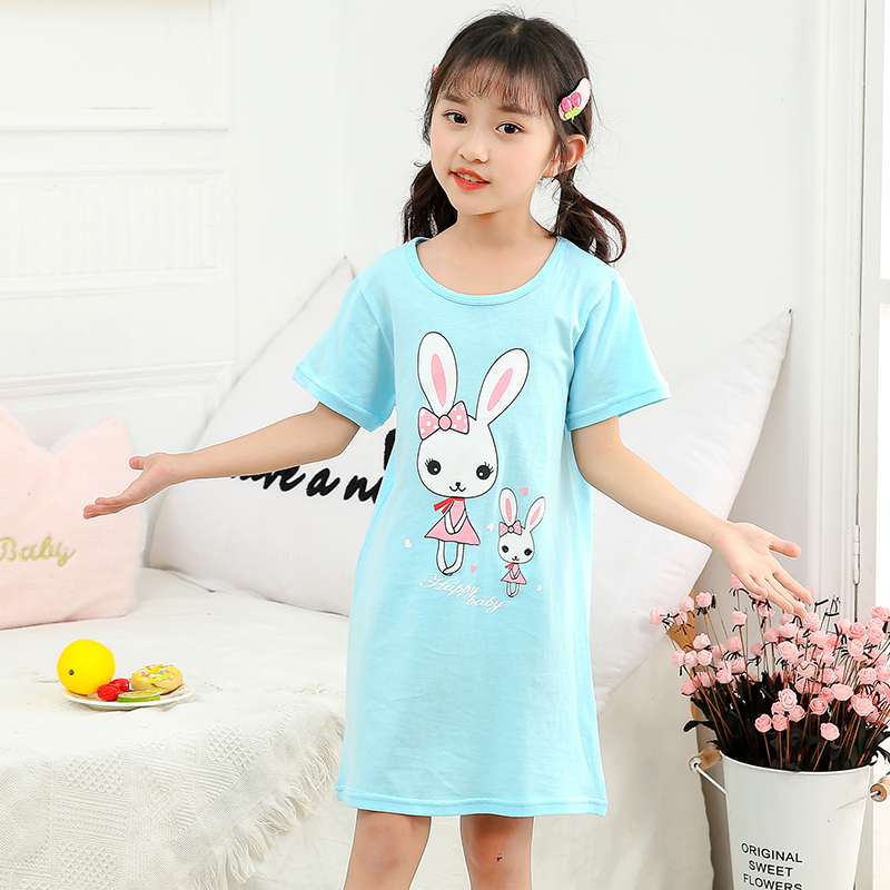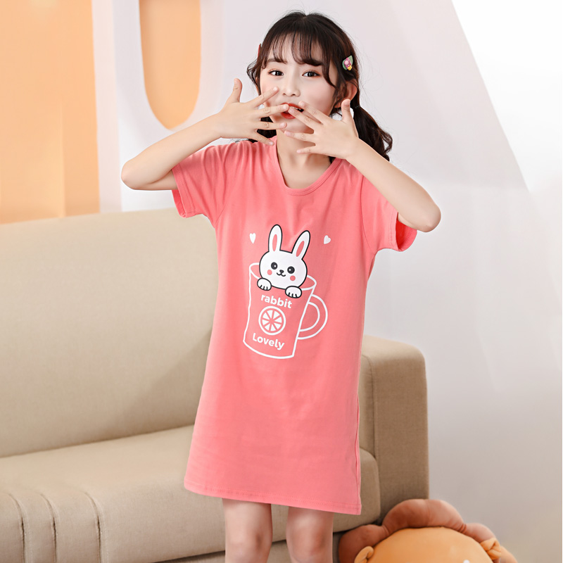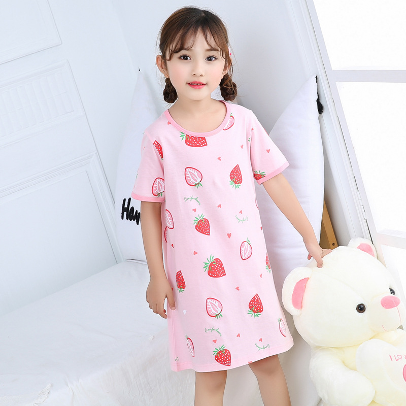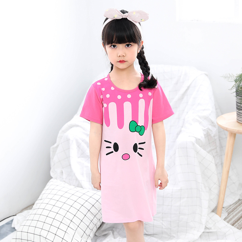Kids Girls Nightgown Cartoon Nightdress Girl Sleepwear Nightie Summer Short Sleeves Nightwear Children Clothes