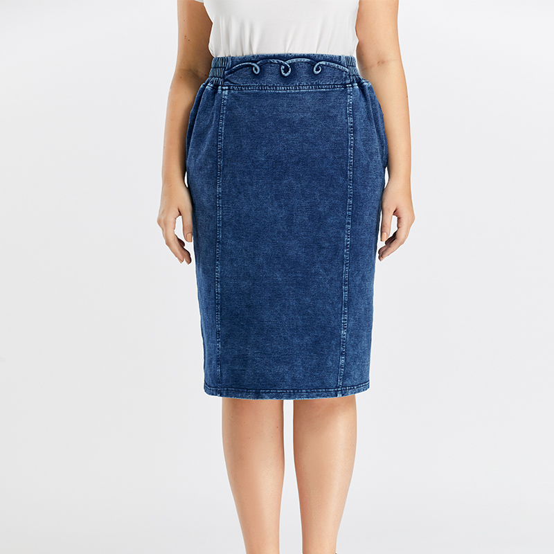 LIH HUA Women's Plus Size Casual Denim Skirt High Flexibility Skirt Knitted Denim
