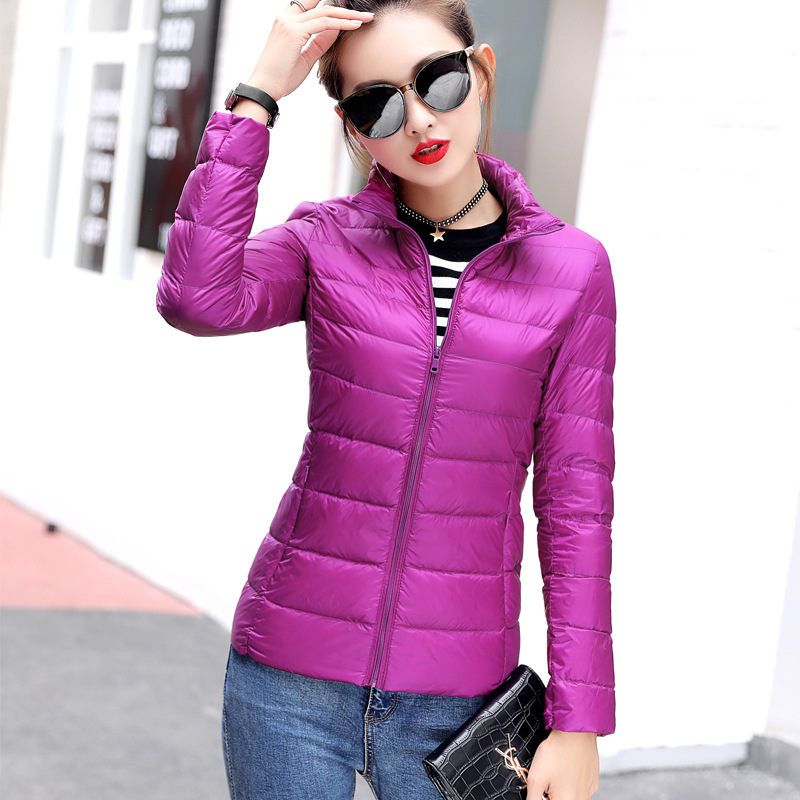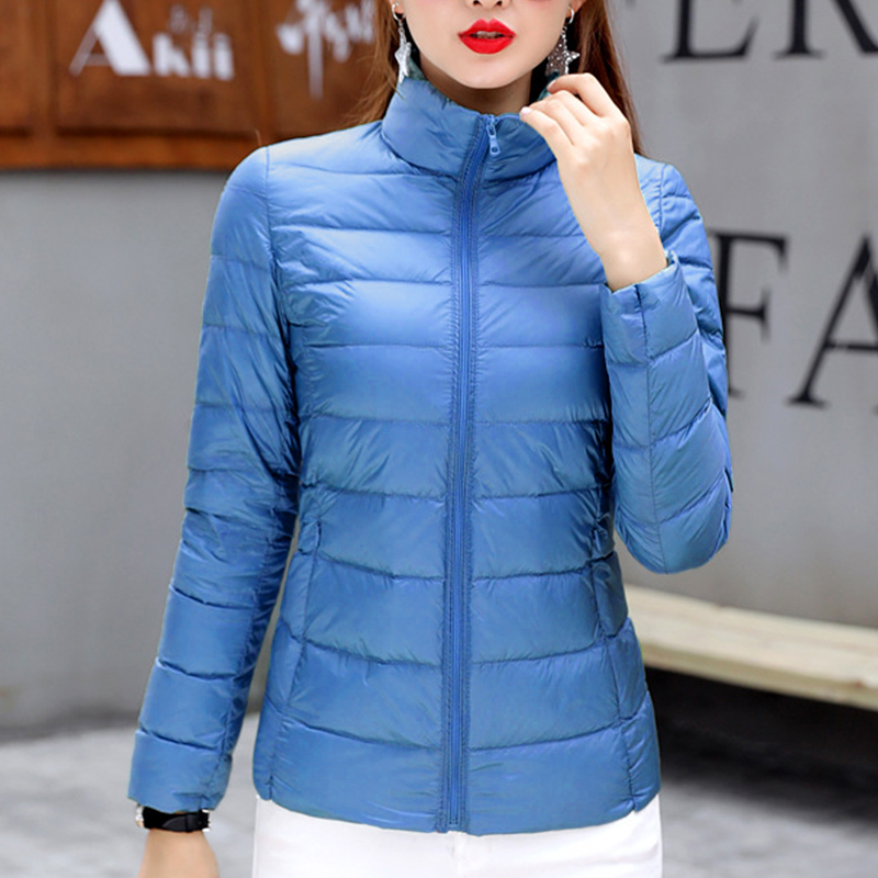 Light Duck Down Puffer Coat Women Autumn Coats Warm Duck Down Female Casual Jacket Stand Collar Pocket Lady Slim Jacket 3XL