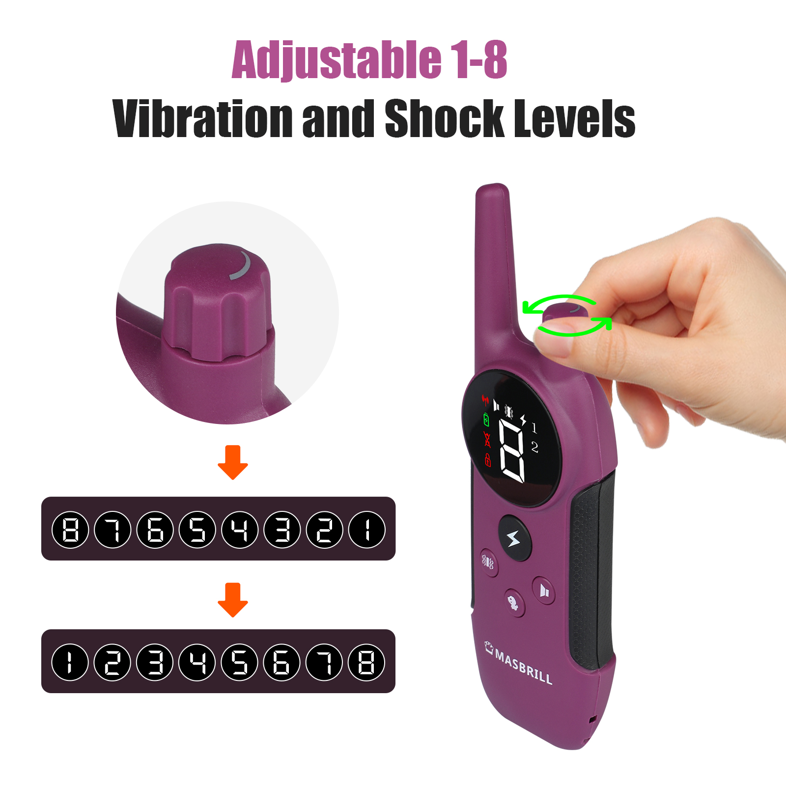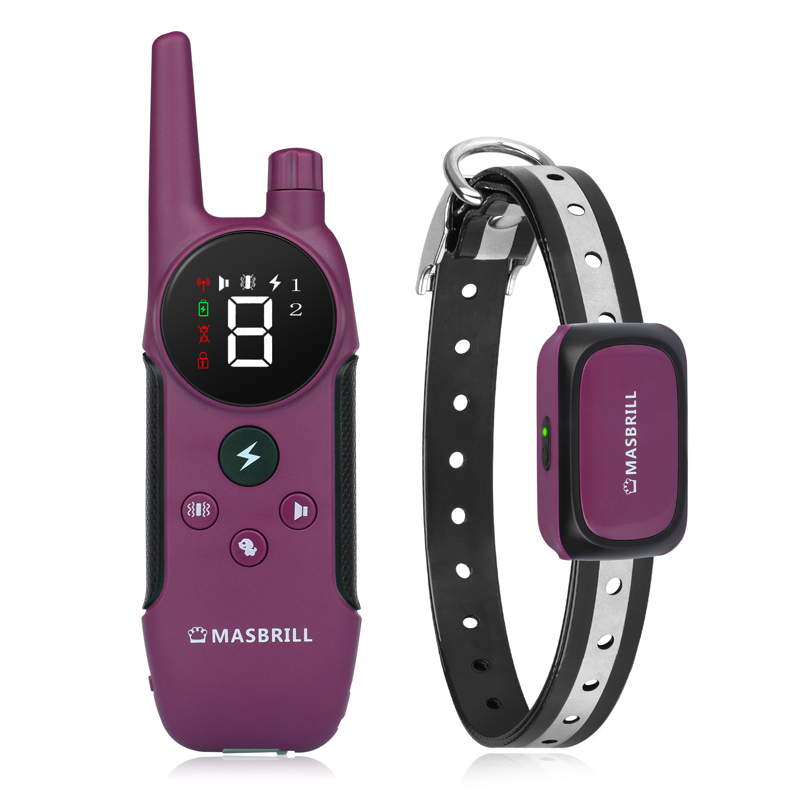 MASBRILL Electronic Dog Training Collar provides 3 extremely efficient and safe training modes (beep, vibration and shock modes) for you to teach a dog basic obedience commands and solve an uncontrollable dog's behaviour problems.