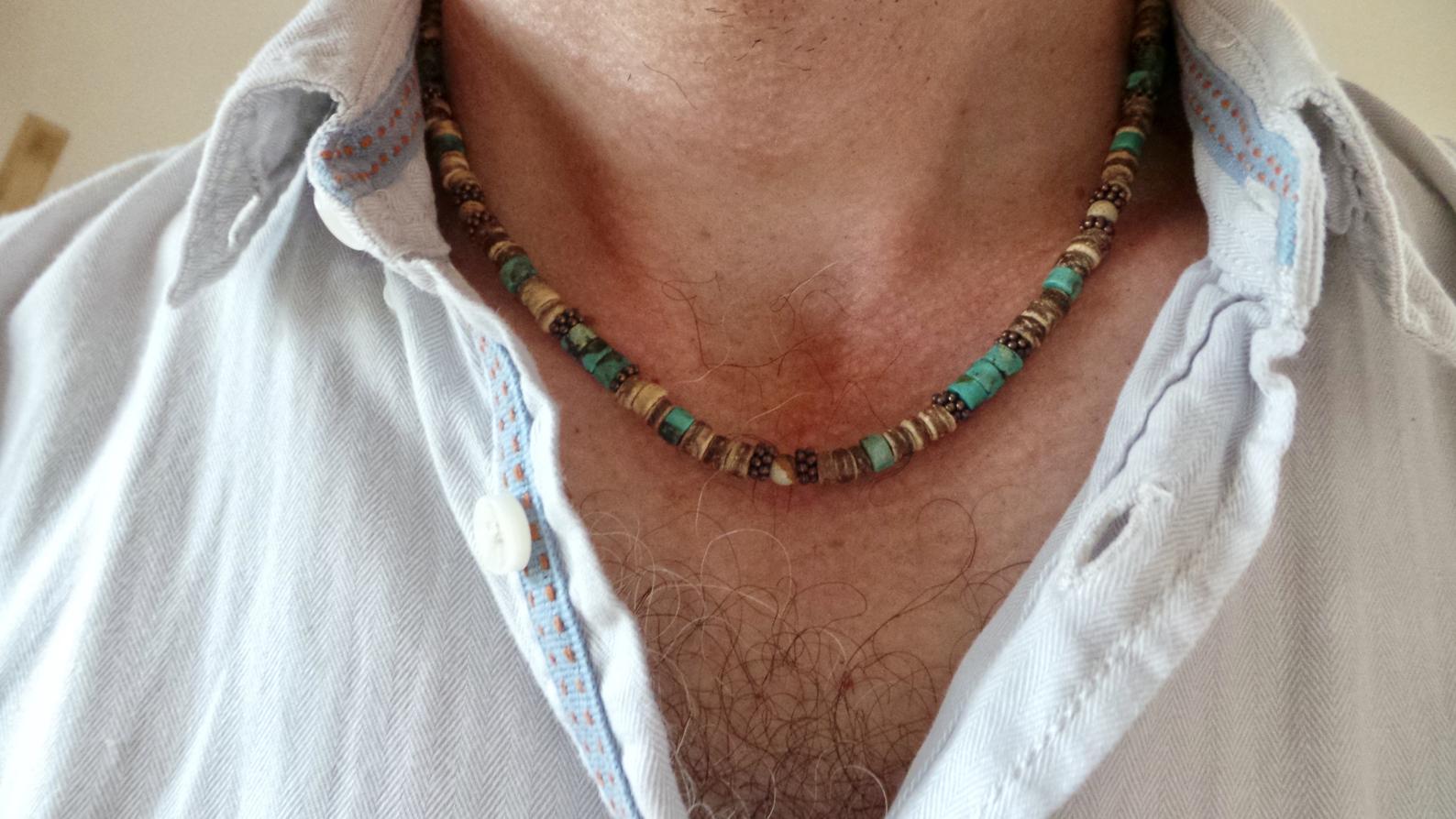 Men's African necklace, Men african Beaded jewelry, Surfer necklace Gifts for men, Wooden Beach Necklace