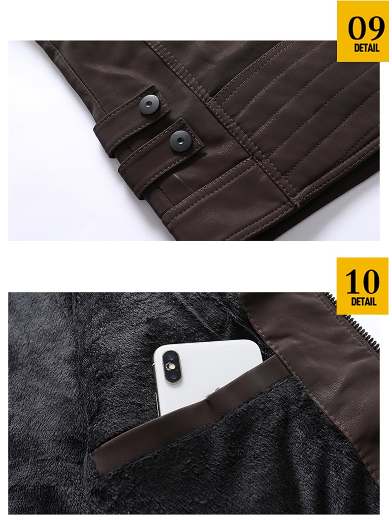Men's Frosted Leather Jacket Motorcycle Winter Inner Fleece Coat Stand Collar Motor Jackets Slim PU Leather Coats Mens Clothing