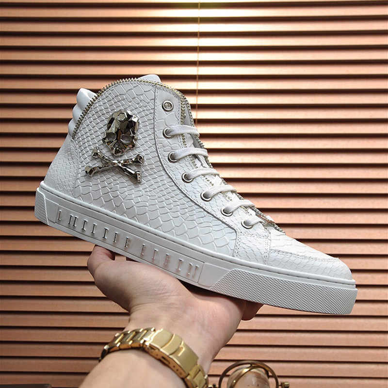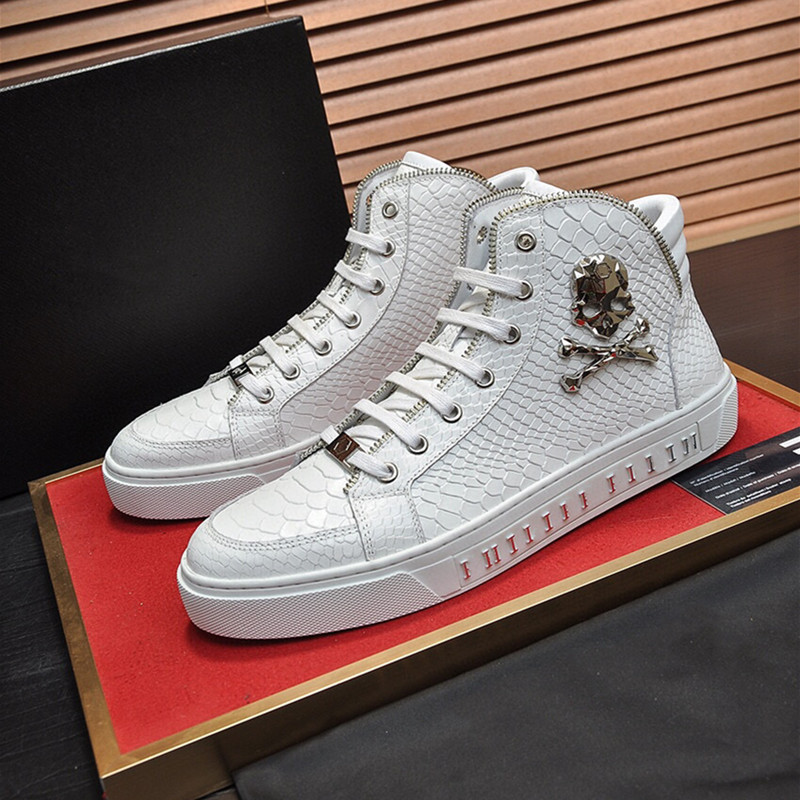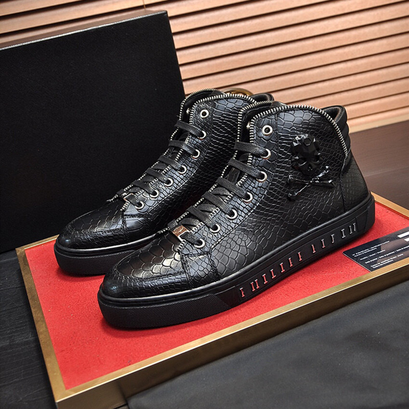 Mens Solid color High help metal Designer Runner Trainers Genuine Leather Lace-up genuine leather Casual Boots