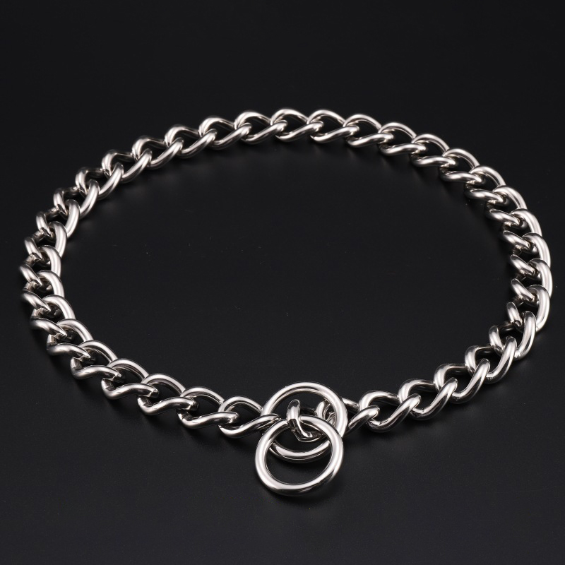 Metal Stainless Chain Dog Collar Silver Cuban Link Dog Slip Chain Choke Collar Steel Strong Slip Dog Collars for Pet