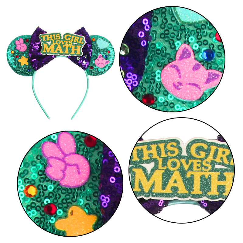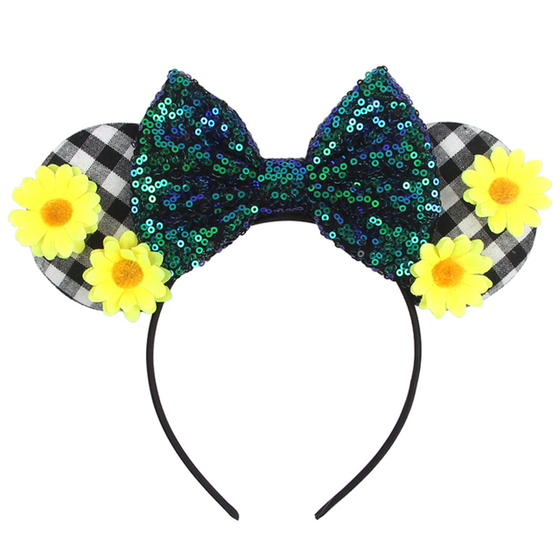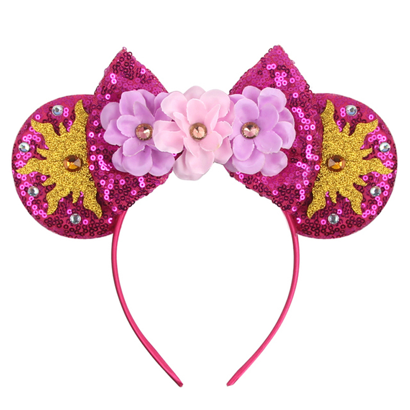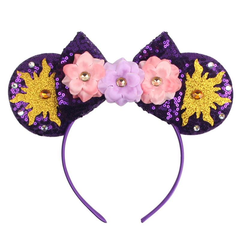 Mickey Mouse Ears Headband Pretty Princess Girls Birthday Party Cosplay Hairband Flowers Sequin Bow Hair Accessories