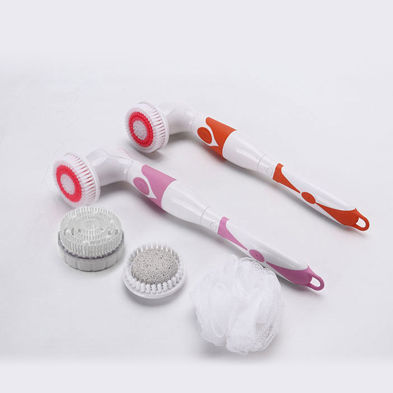 Note: The electric bath brush is composed of a brush head, a handle and a battery cover. It has the functions of rotating the brush with fast, medium and slow motor oscillation, pushing the brush up and down, and replacing the brush head. Purpose. The utility model has reasonable design, simple structure and integrated multi-function, which can not only help people to clean their backs, but also the vibration and massage functions of the motor can eliminate the fatigue of the human body, so that one can enjoy a comfortable bathing pleasure