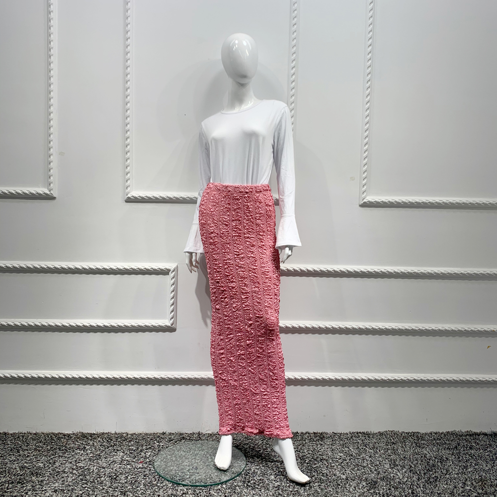 Muslim Skirt Bodycon Stretch Elasticity Women Knit Maxi Bottoms Solid Color Ramadan Sheath Islamic Skirts High Waist Straight